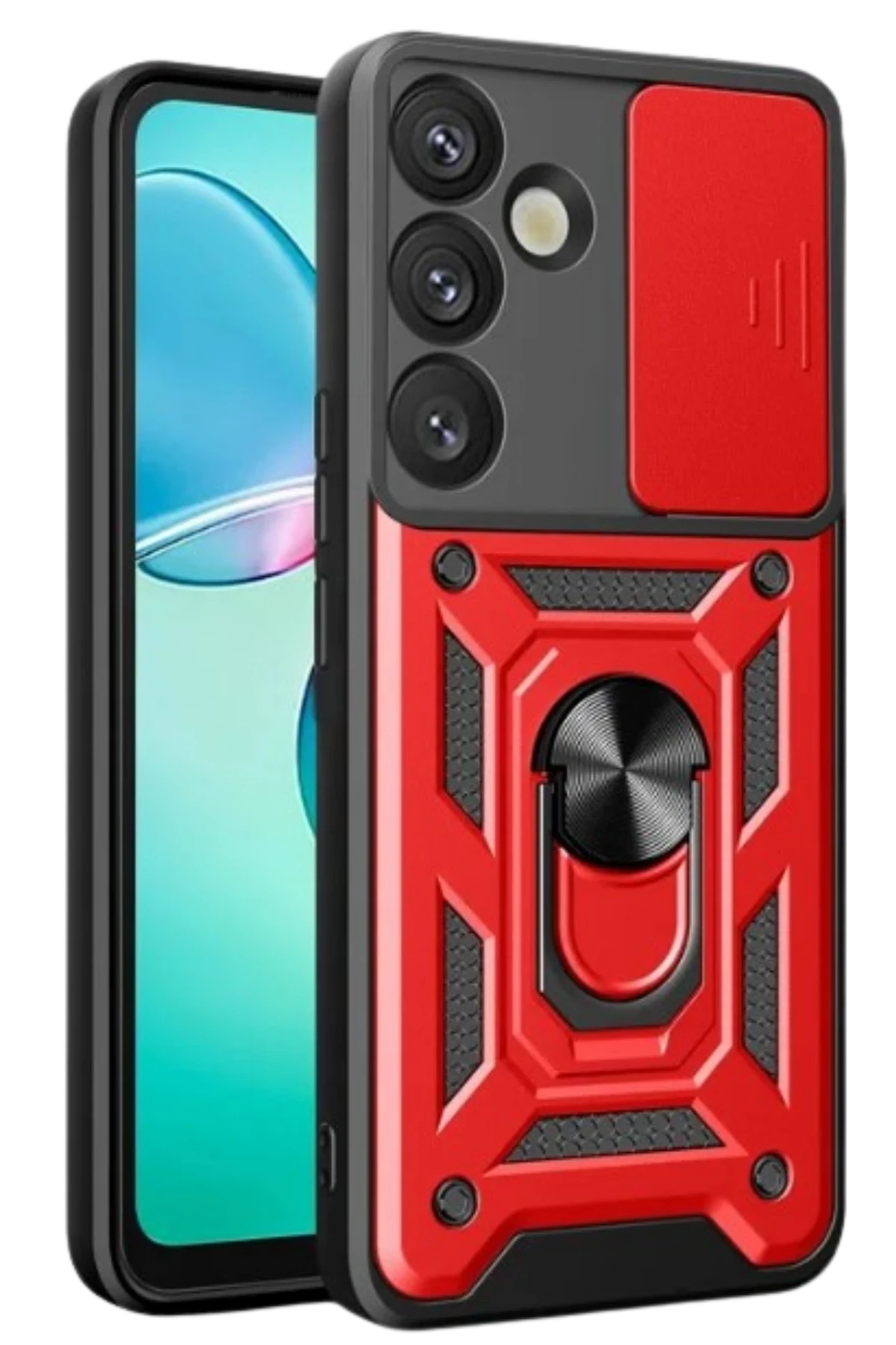 Newface Samsung Galaxy S25 Kılıf Pars Lens Yüzüklü Silikon – Kırmızı