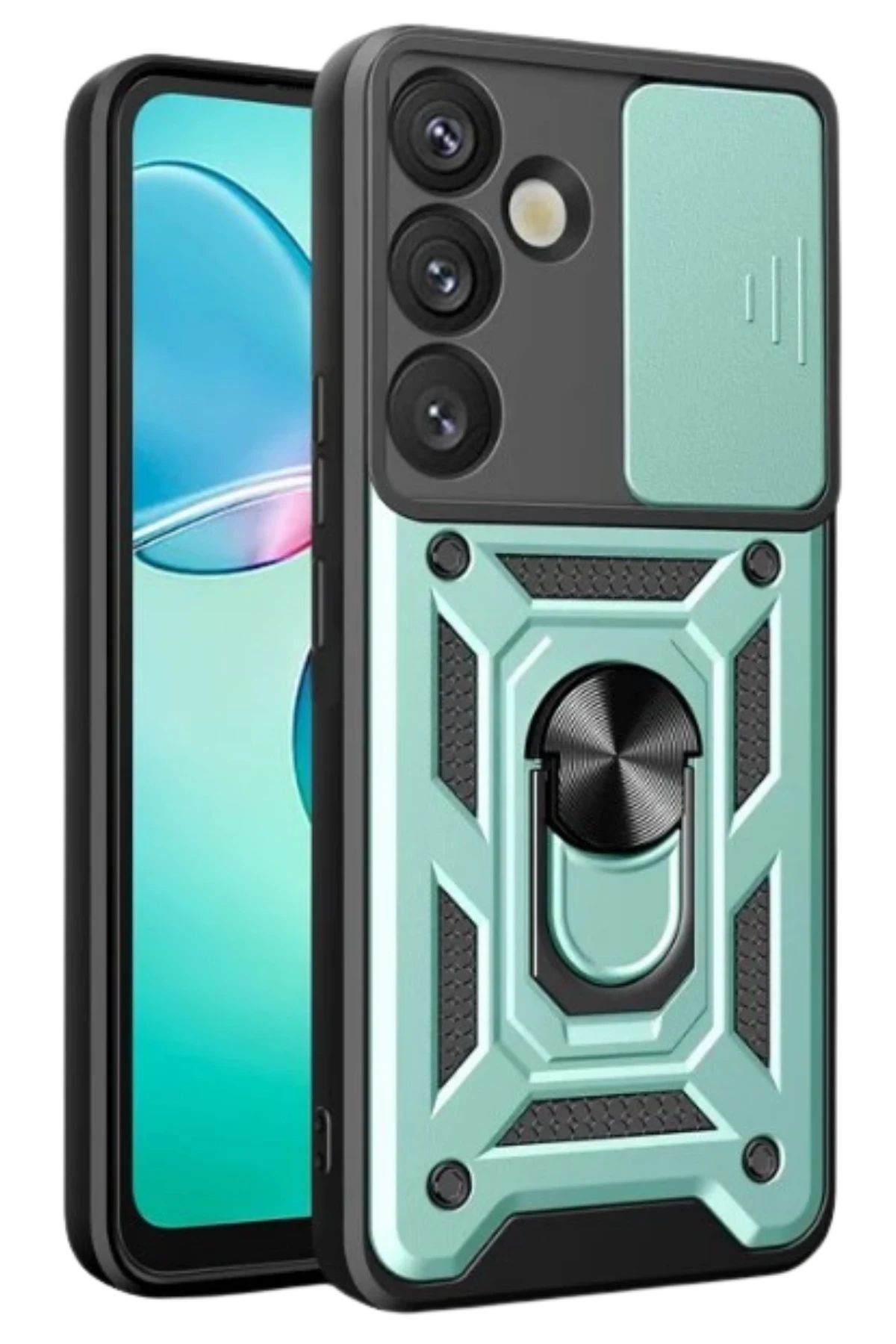 Newface Samsung Galaxy S25 Kılıf Pars Lens Yüzüklü Silikon – Yeşil