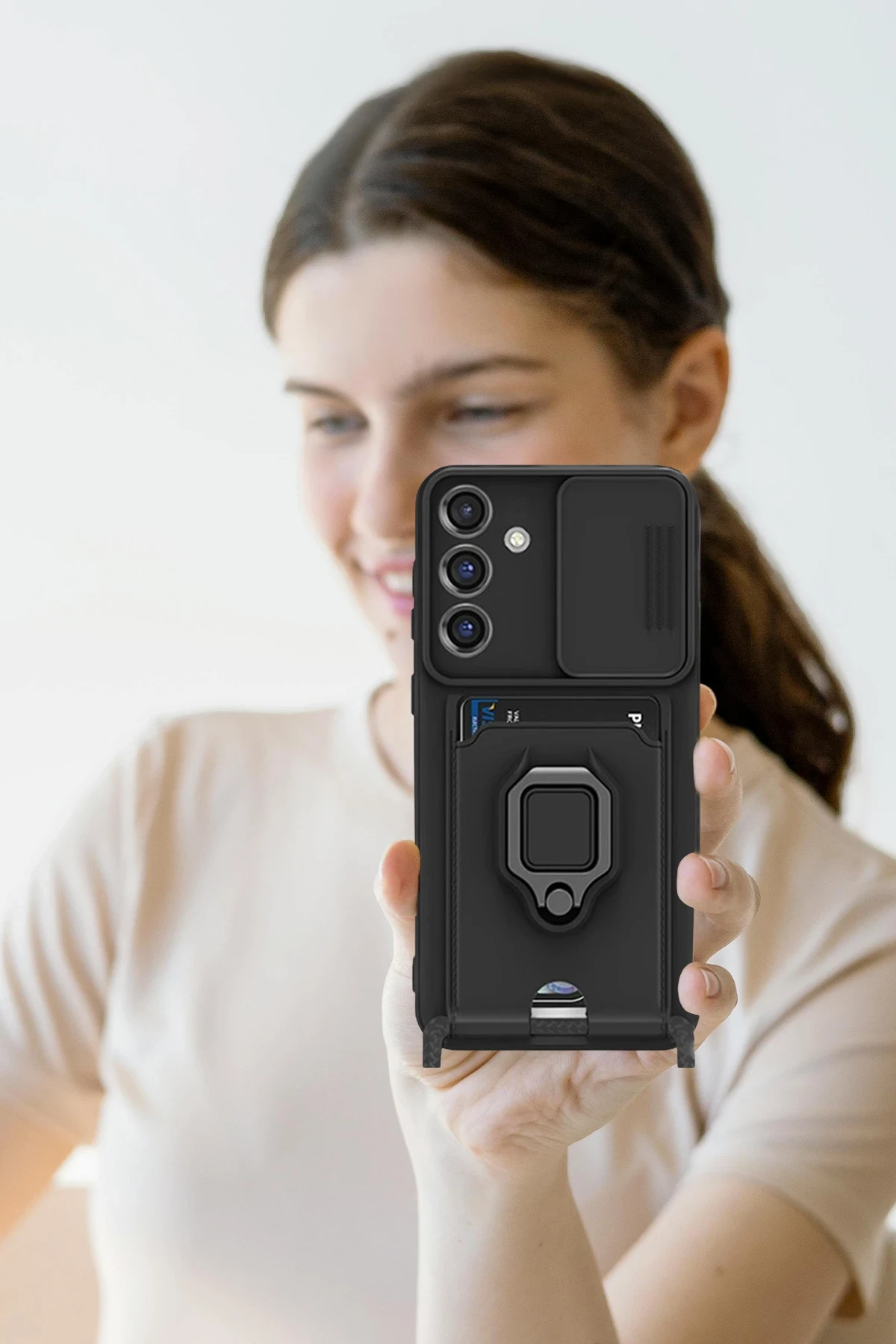 Kılıfın alt kısmındaki özel delik tasarımı sayesinde dilediğinizde omuz askısı takarak telefonunuzu çanta gibi taşıyabilirsiniz. Bu özellik özellikle hareket halinde pratiklik ve güvenlik sunar.