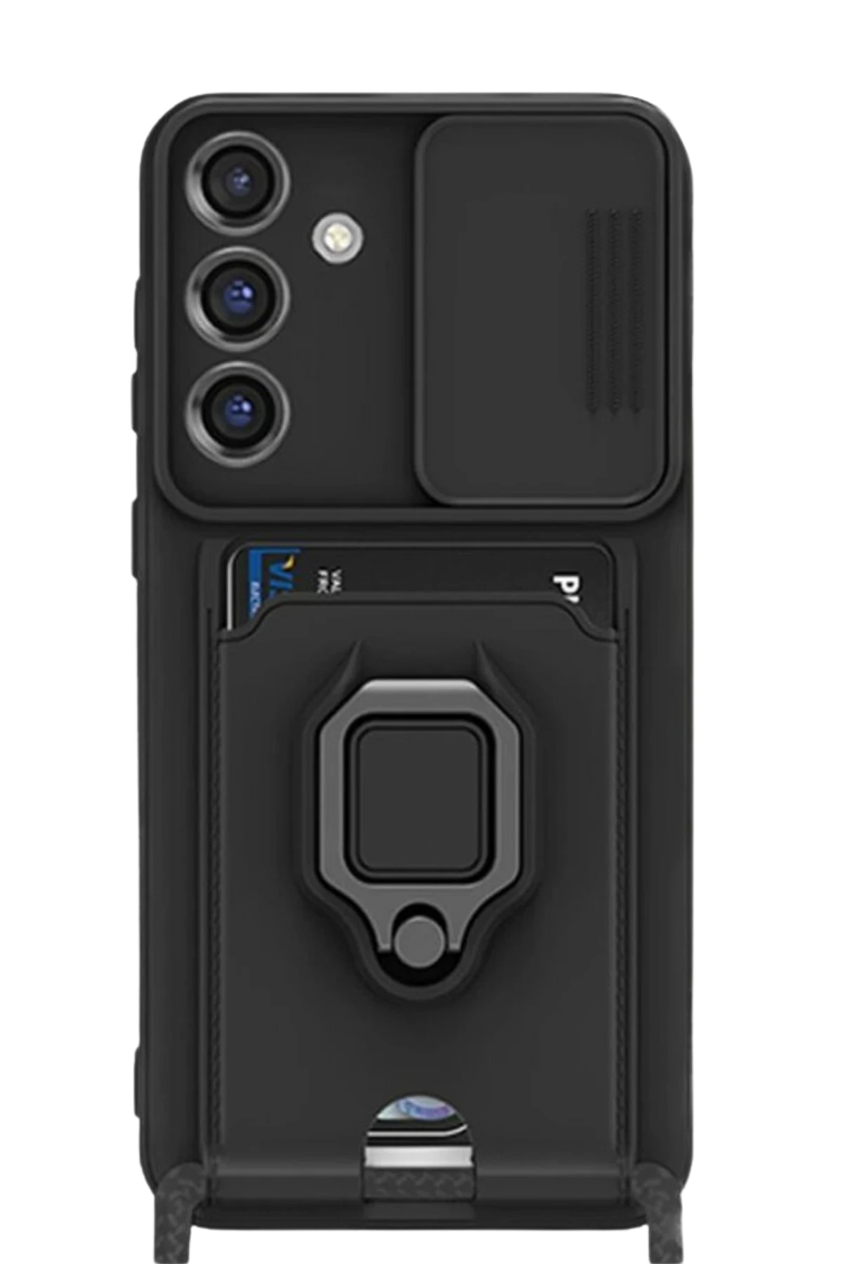 Newface Samsung Galaxy S25 Plus Kılıf Zuma Kartvizitli Yüzüklü Silikon – Siyah