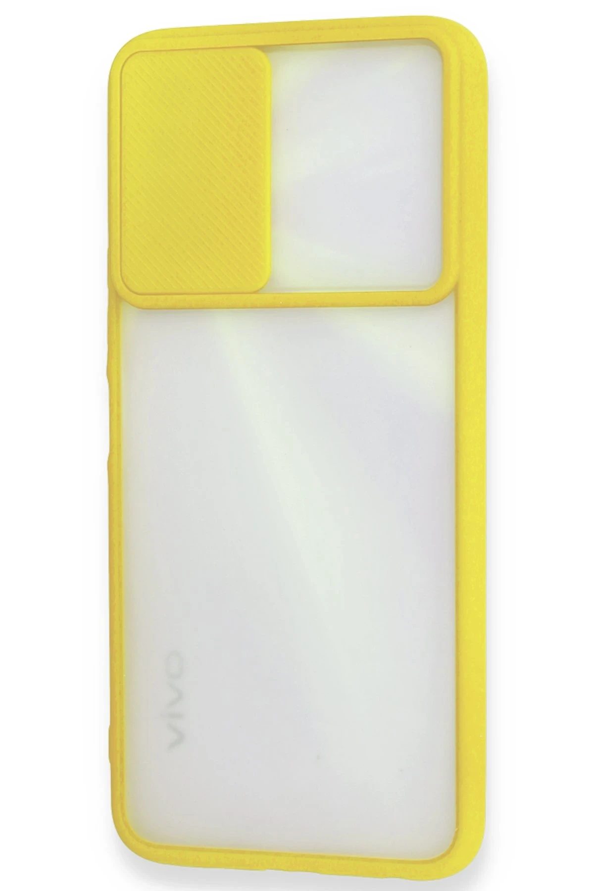 Newface Vivo Y11S Kılıf Palm Buzlu Kamera Sürgülü Silikon – Sarı