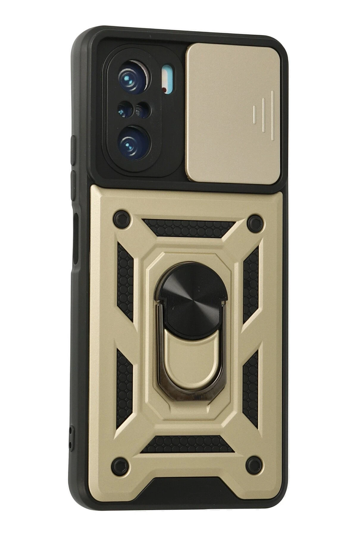 Newface Xiaomi Poco F3 Kılıf Pars Lens Yüzüklü Silikon – Gold
