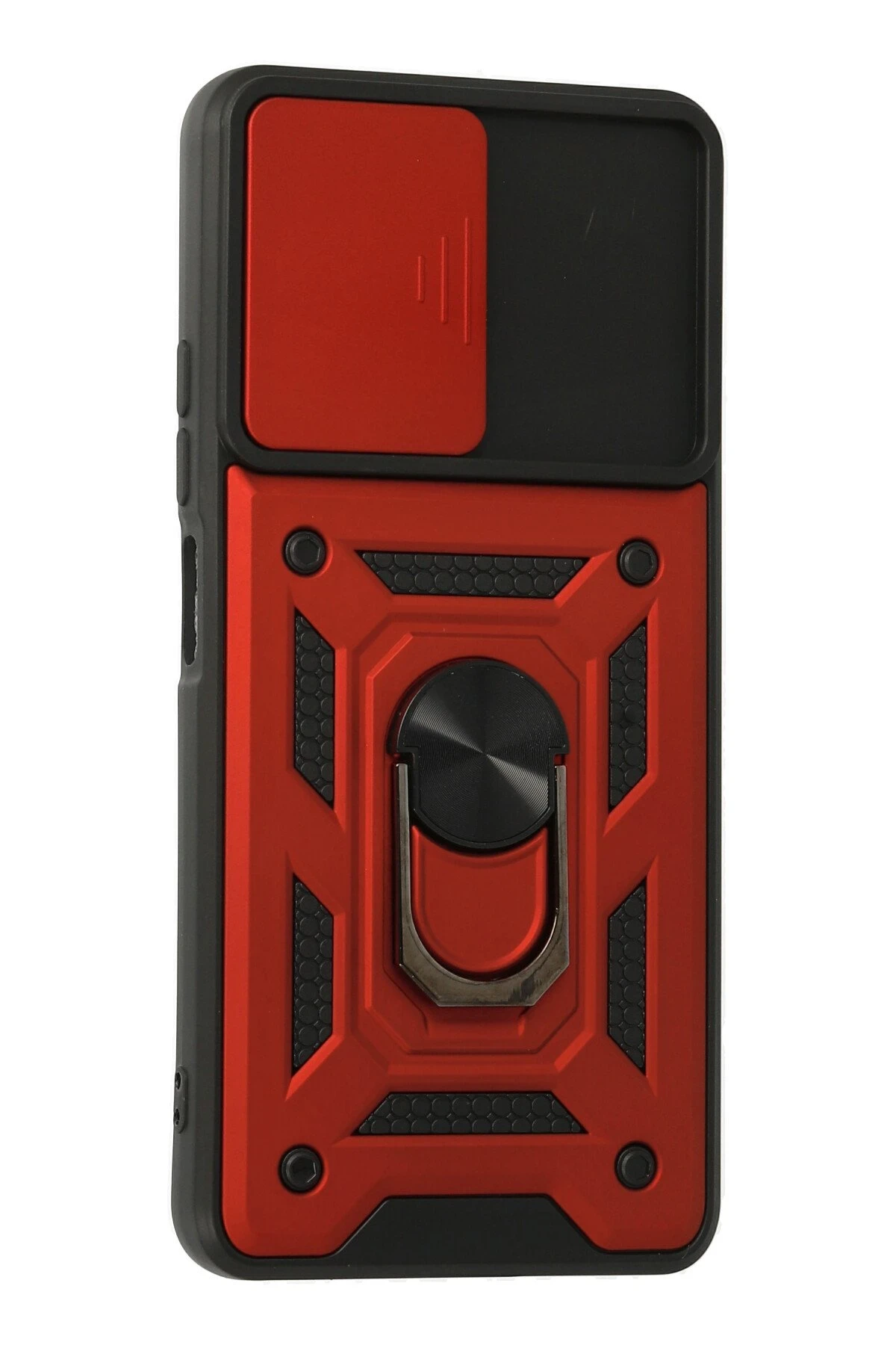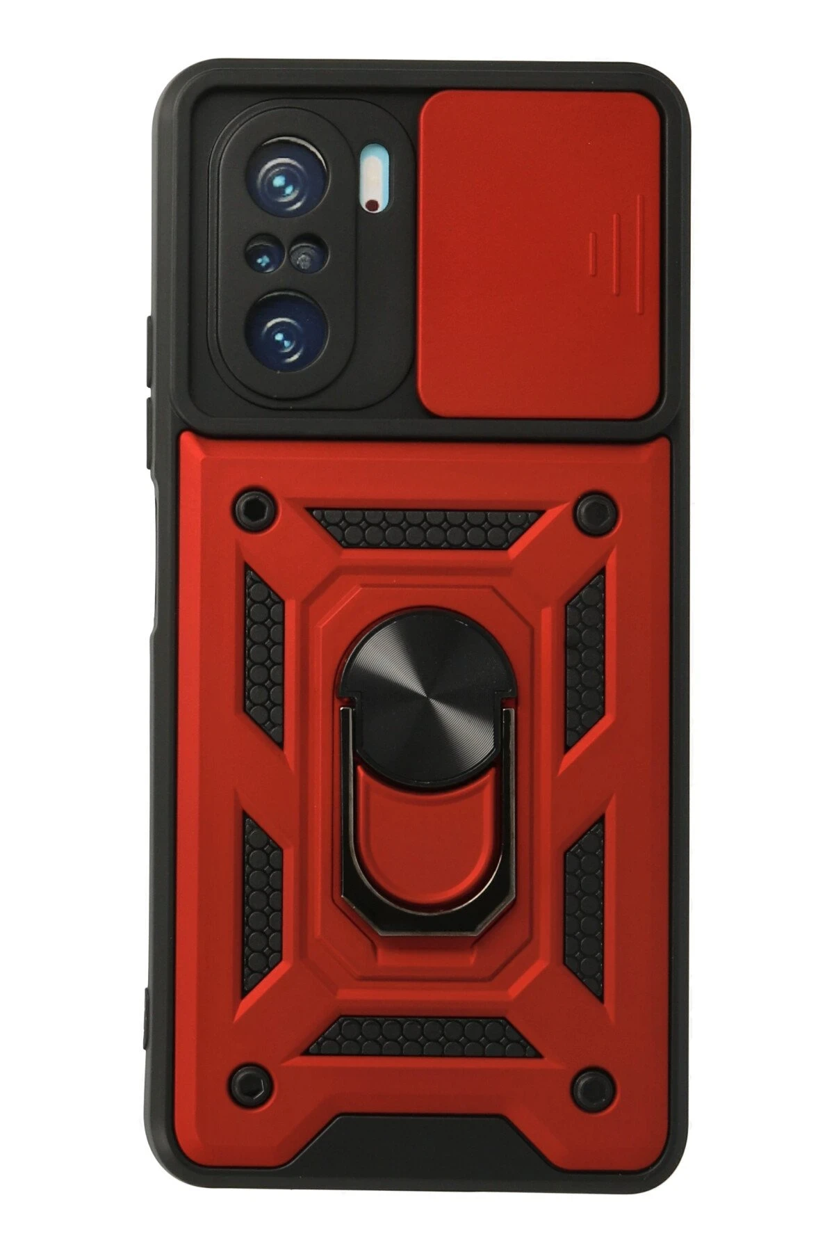 Newface Xiaomi Poco F3 Kılıf Pars Lens Yüzüklü Silikon – Kırmızı