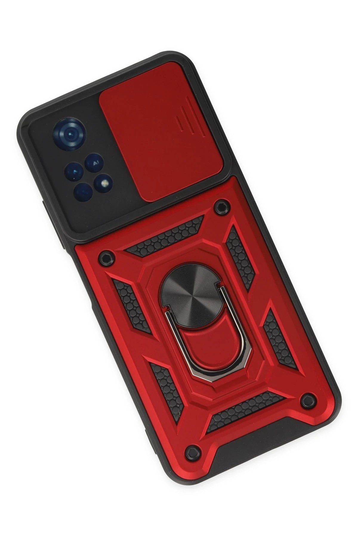Newface Xiaomi Poco M4 Pro 4G Kılıf Pars Lens Yüzüklü Silikon – Kırmızı