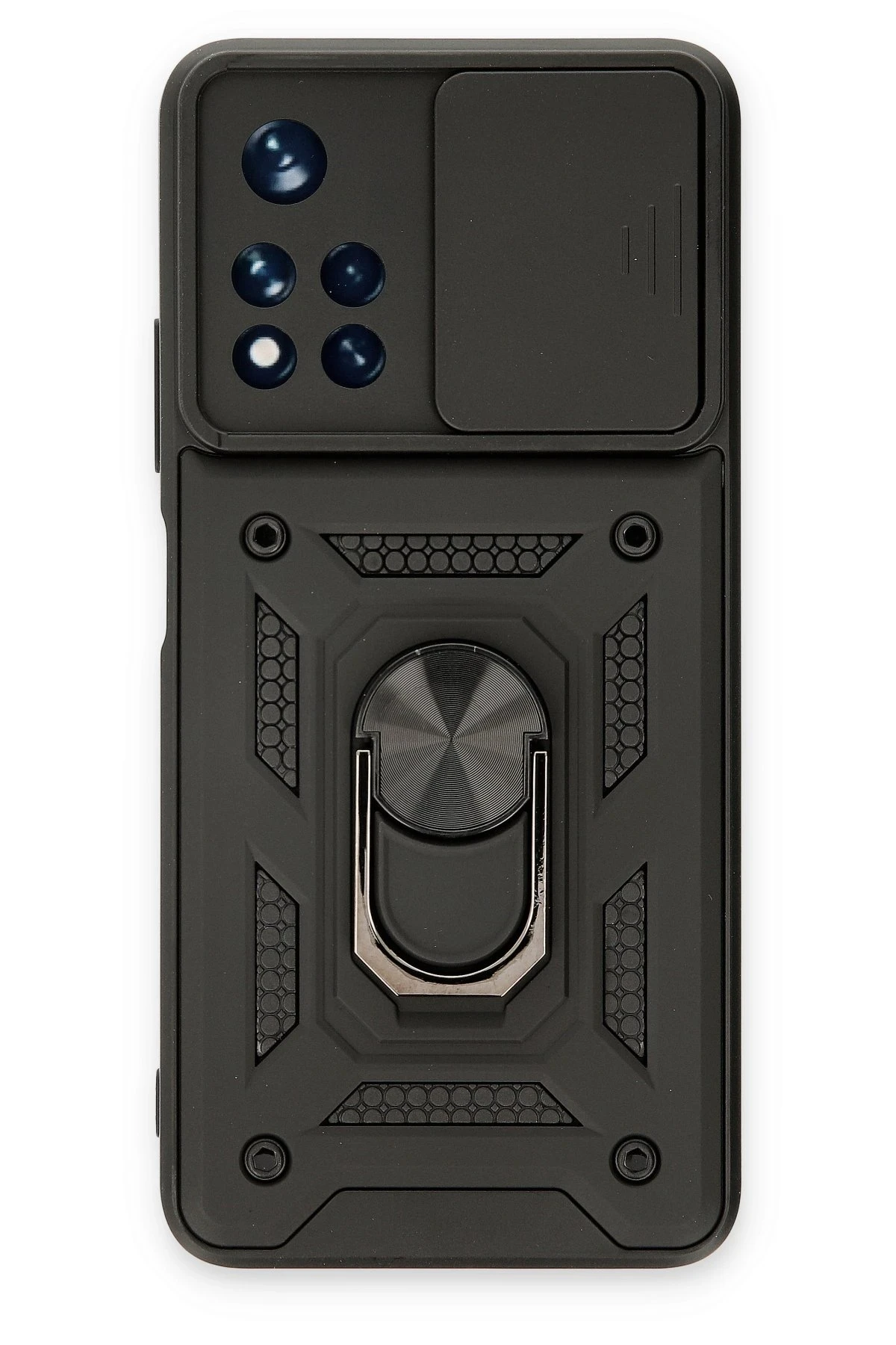 Newface Xiaomi Poco M4 Pro 5G Kılıf Pars Lens Yüzüklü Silikon – Siyah