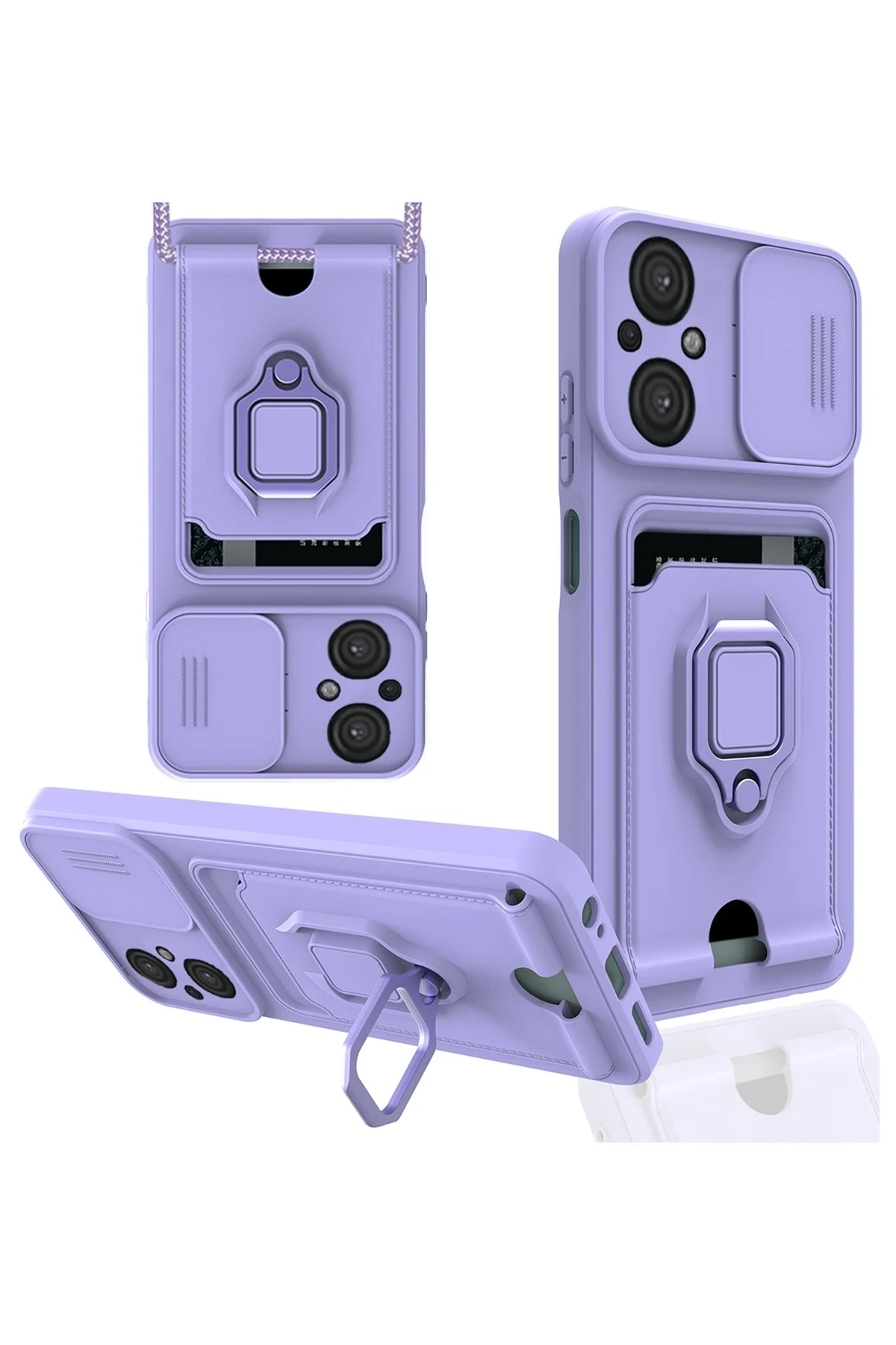 Newface Xiaomi Poco M5 Kılıf Zuma Kartvizitli Yüzüklü Silikon – Lila