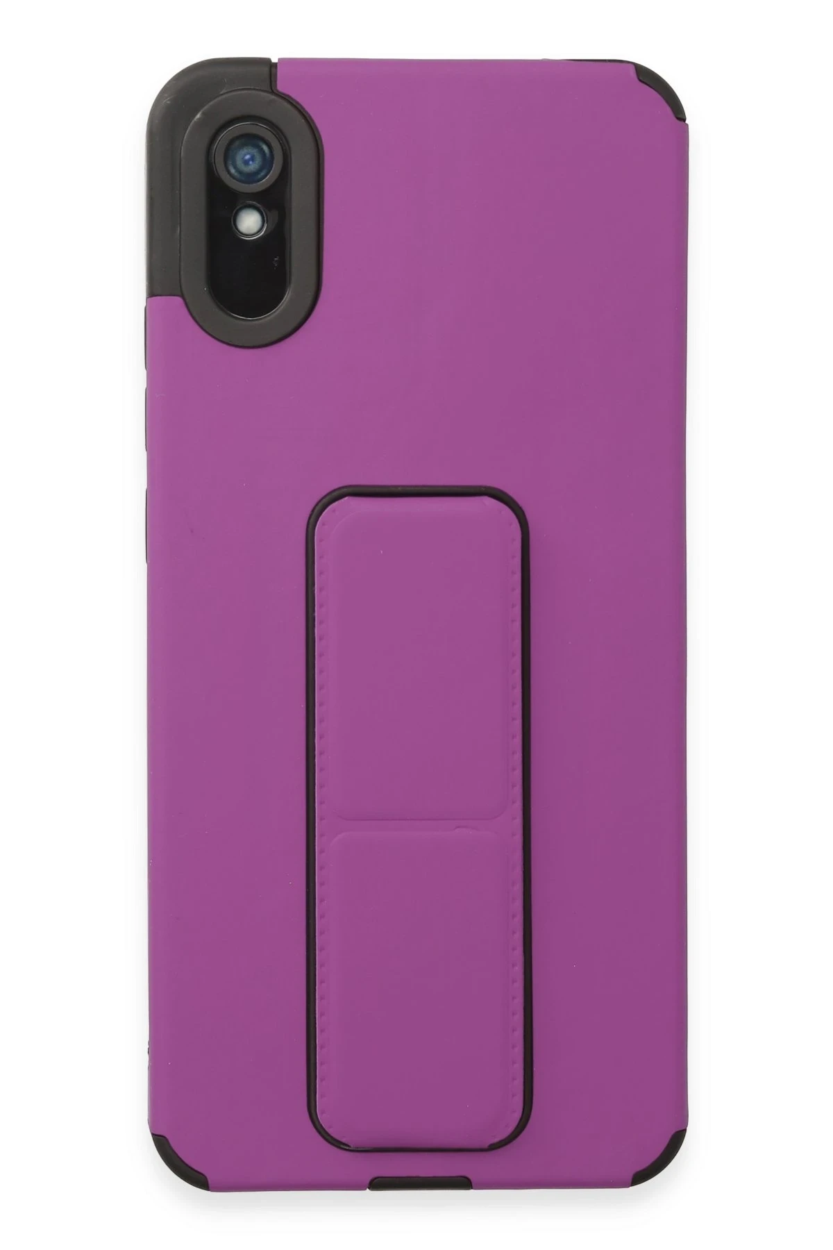 Newface Xiaomi Redmi 9A Kılıf Mega Standlı Silikon – Mor