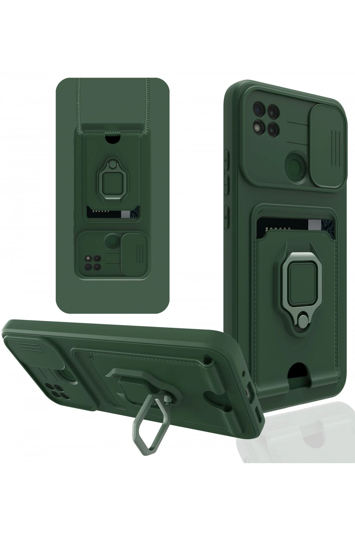 Newface Xiaomi Redmi 9C Kılıf Zuma Kartvizitli Yüzüklü Silikon – Yeşil