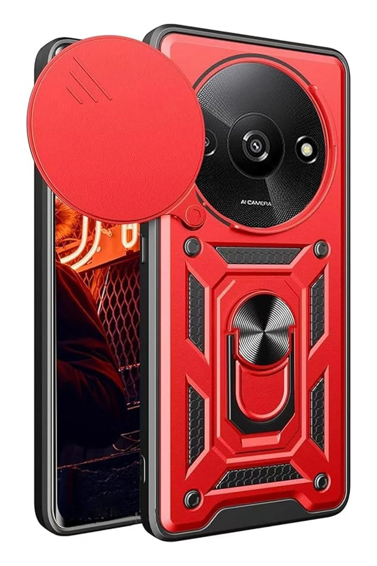 Newface Xiaomi Redmi A3 4G Kılıf Pars Lens Yüzüklü Silikon – Kırmızı