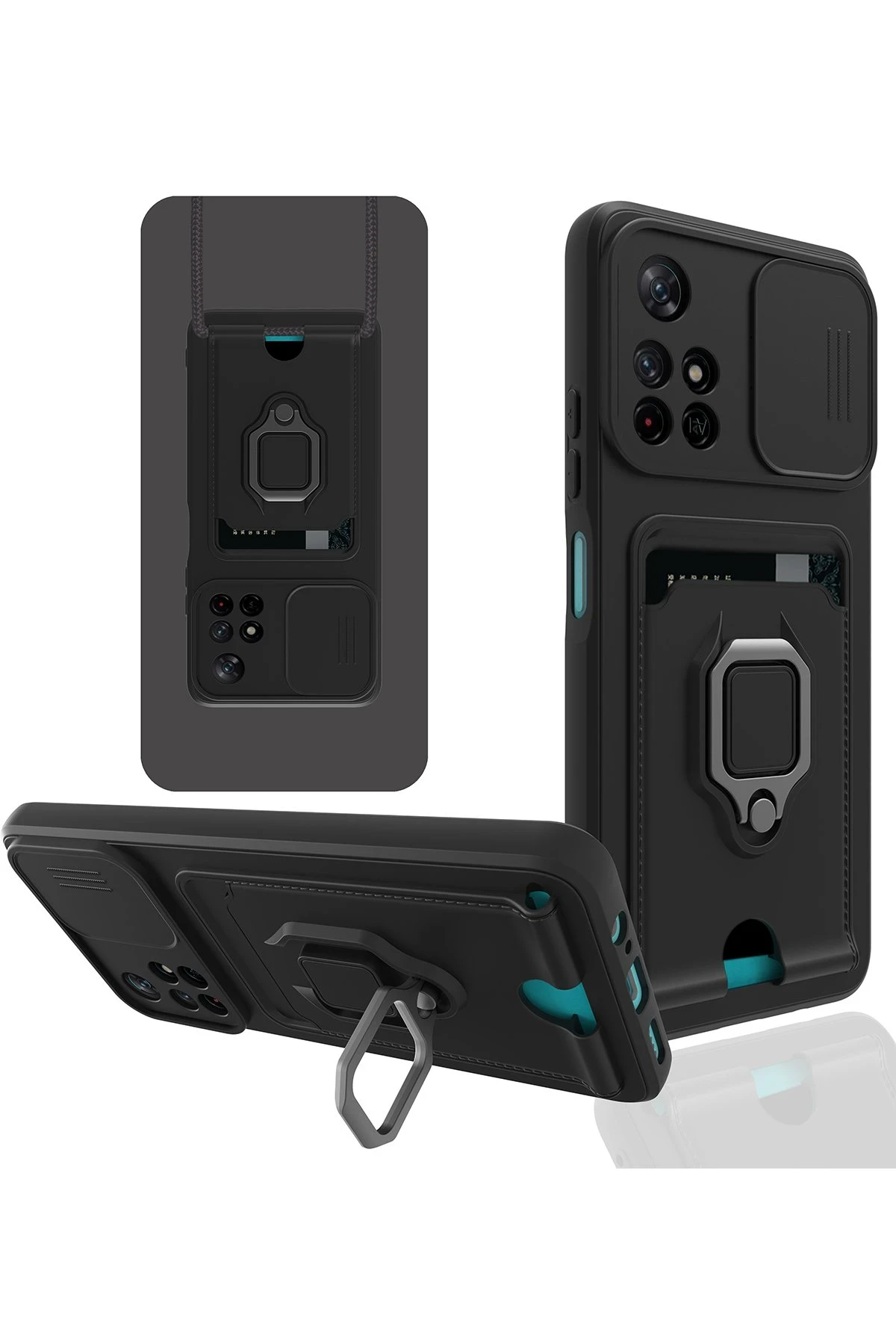 Newface Xiaomi Redmi Note 11T Kılıf Zuma Kartvizitli Yüzüklü Silikon – Siyah