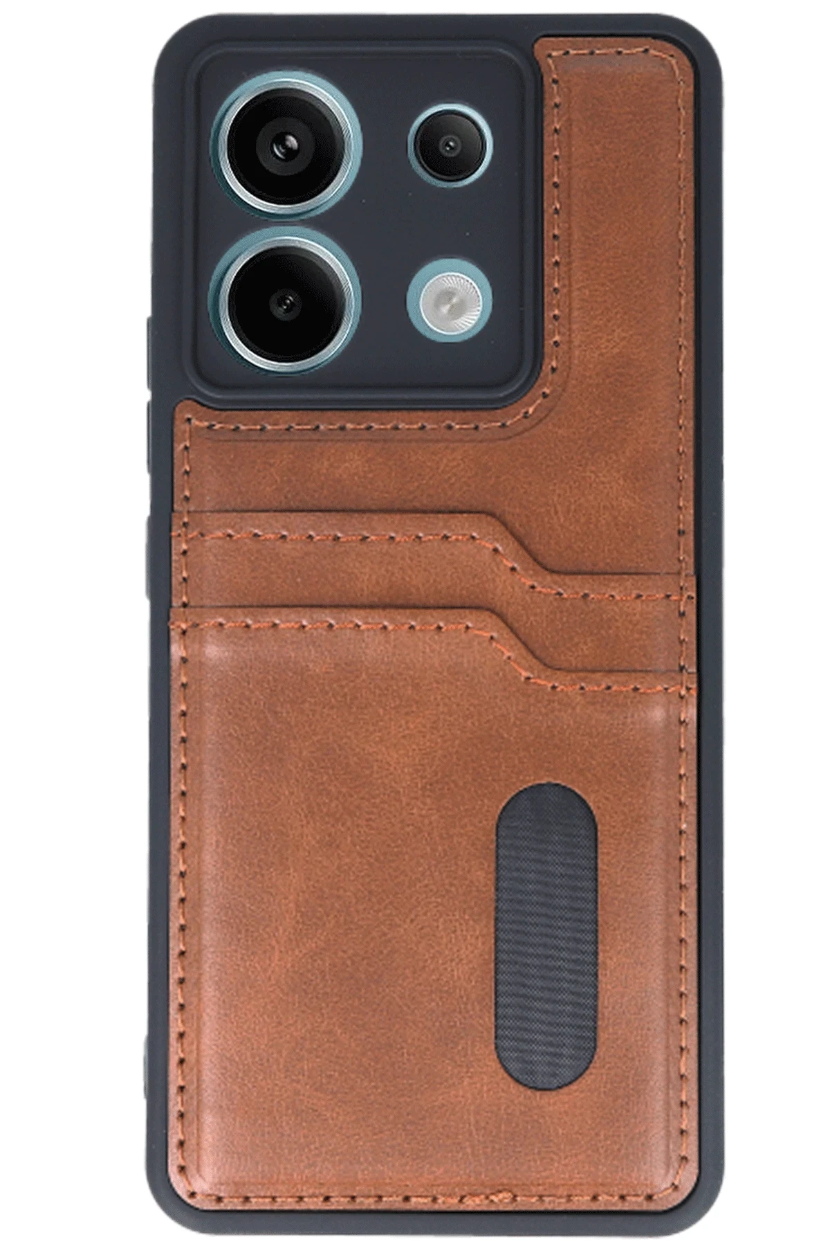 Newface Xiaomi Redmi Note 13 Pro 5G Kılıf Sara Kartvizitli Deri Kılıf – Taba