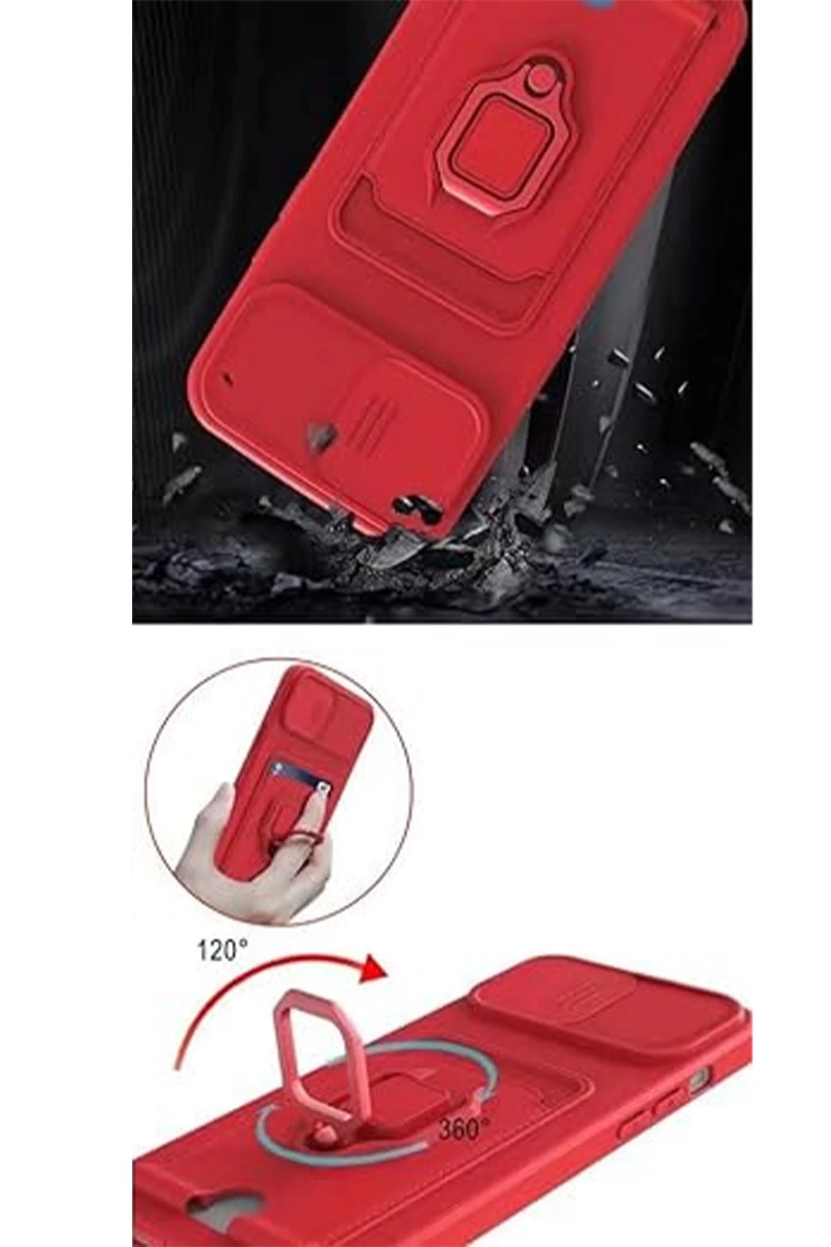 Kart Bölmeli | Kamera Korumalı | Stand Yüzük Destekli | Soft TPU Tasarım