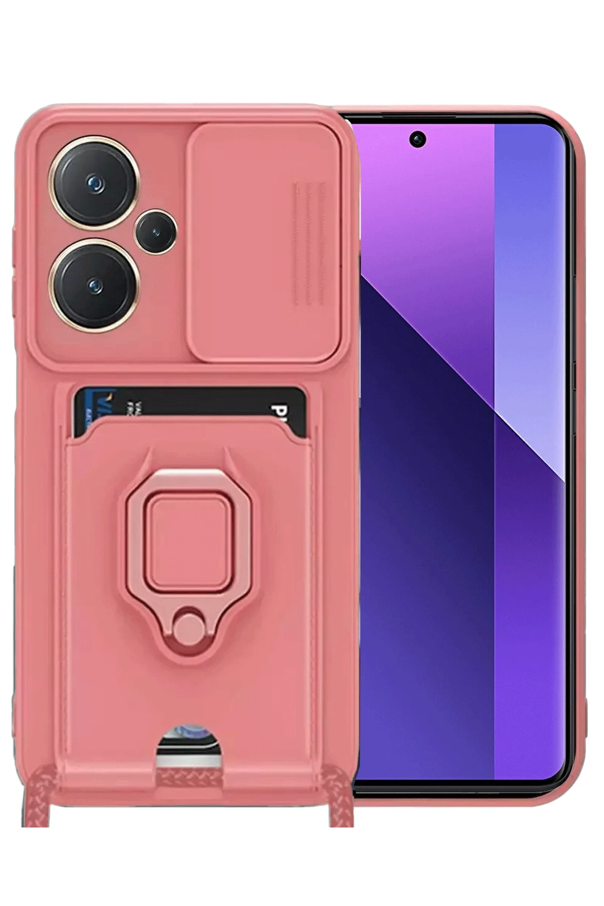 Newface Xiaomi Redmi Note 13 Pro Plus Kılıf Zuma Kartvizitli Yüzüklü Silikon – Pembe