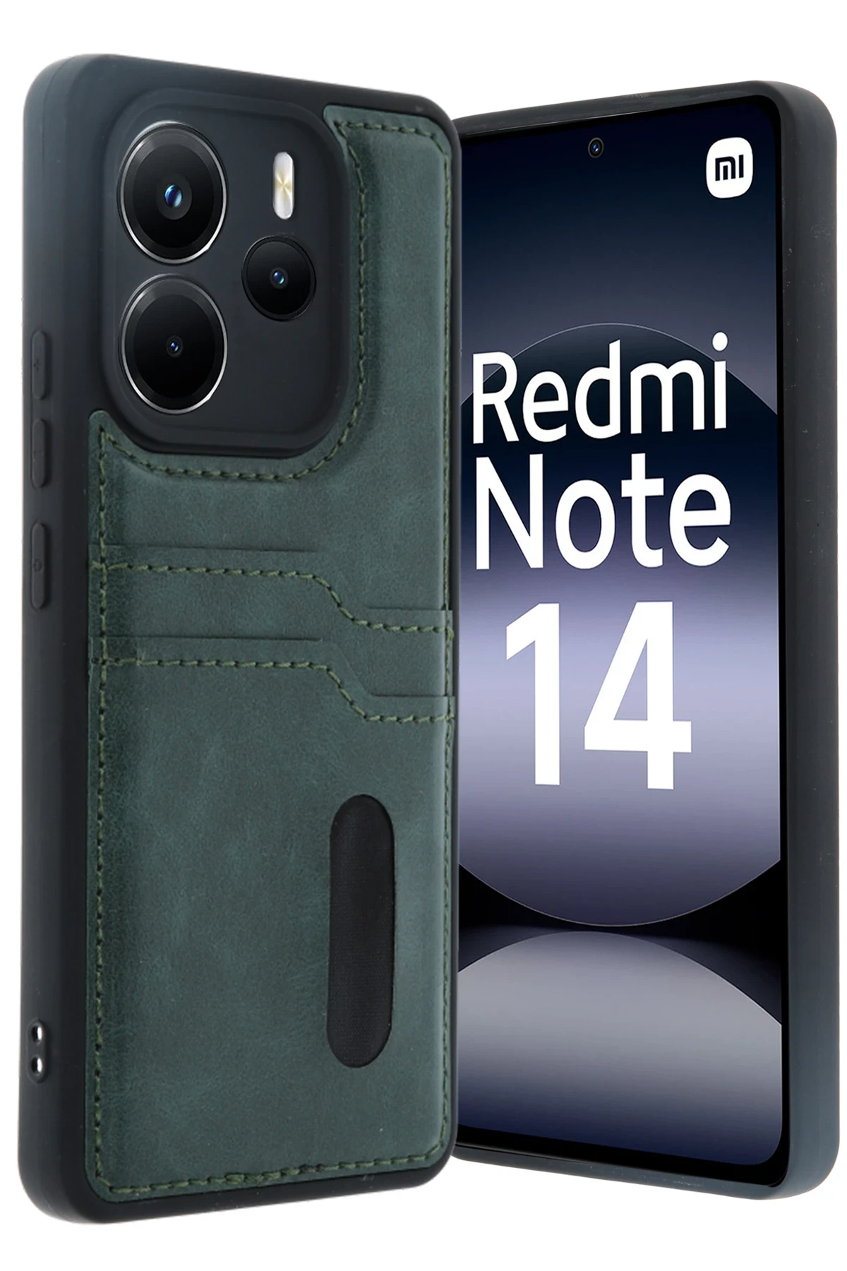 Newface Xiaomi Redmi Note 14 4G Kılıf Sara Kartvizitli Deri Kılıf – Koyu Yeşil