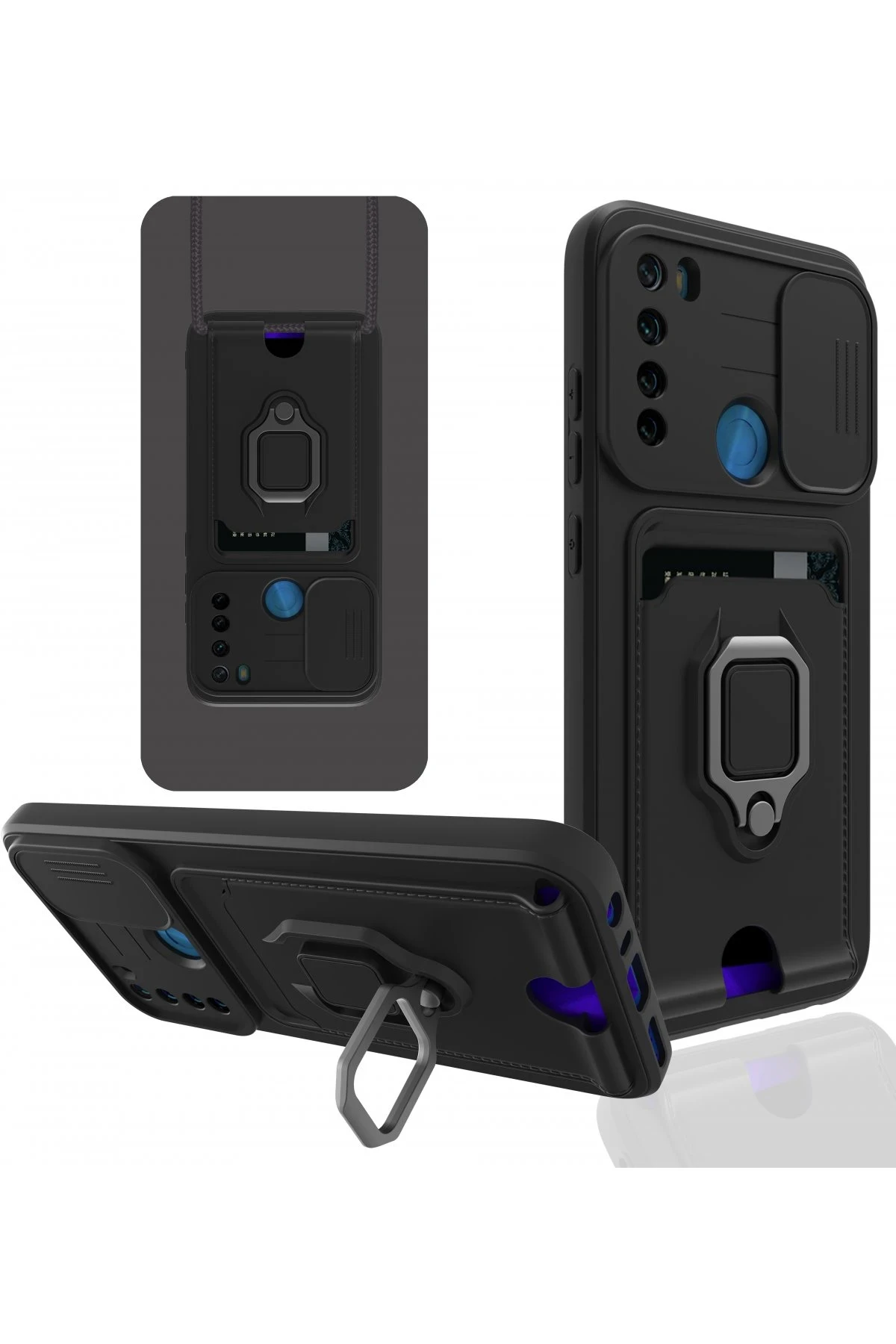 Newface Xiaomi Redmi Note 8 Kılıf Zuma Kartvizitli Yüzüklü Silikon – Siyah
