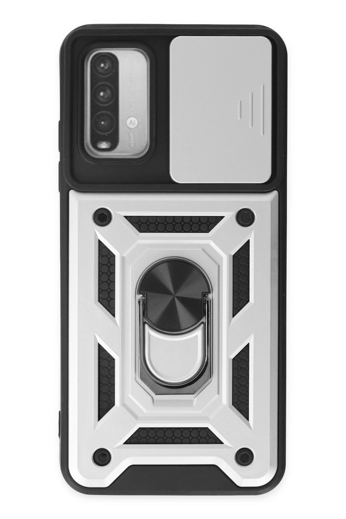 Newface Xiaomi Redmi Note 9 4G Kılıf Pars Lens Yüzüklü Silikon – Gümüş