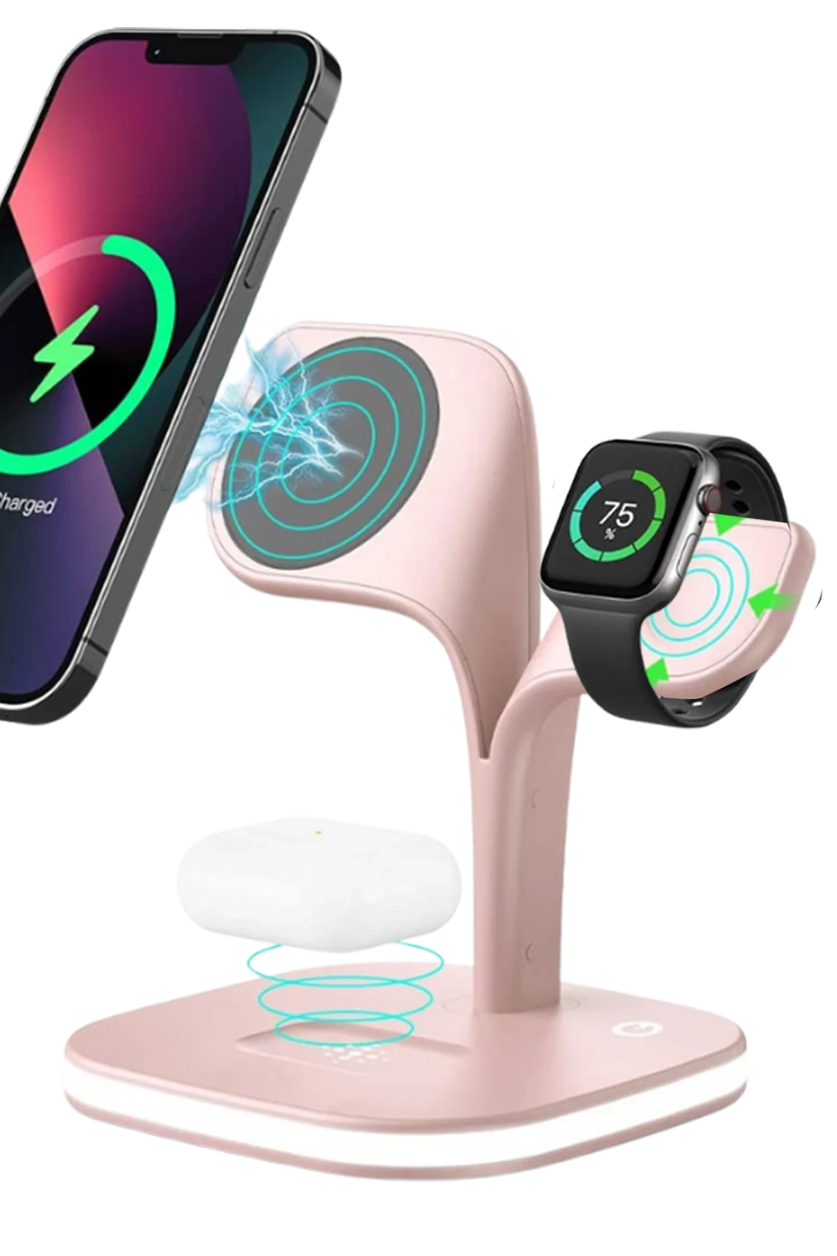 Telefon, kulaklık ve akıllı saat gibi üç cihazı aynı anda kablosuz olarak şarj edin.