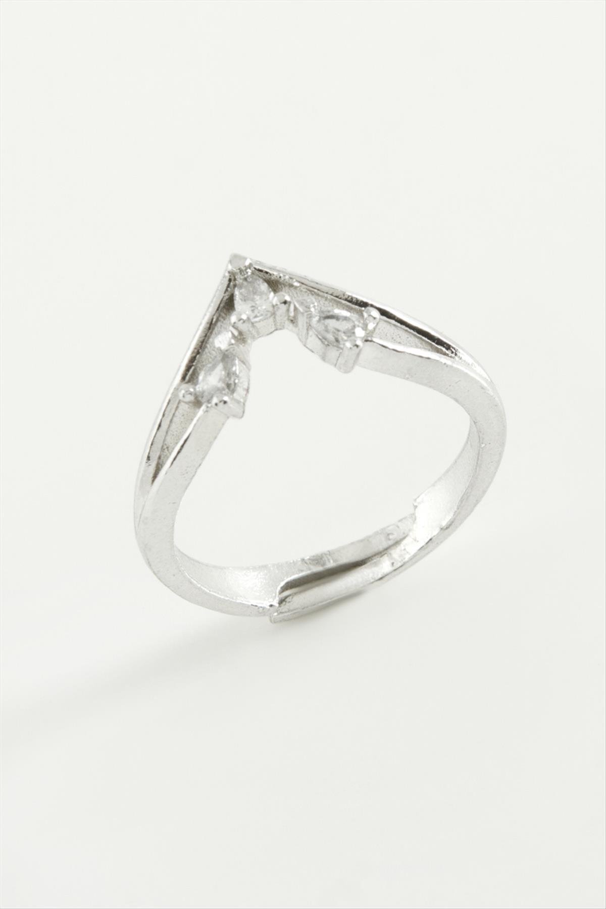Ok Zirkon Taşlı Yüzük-Gümüş Rengi