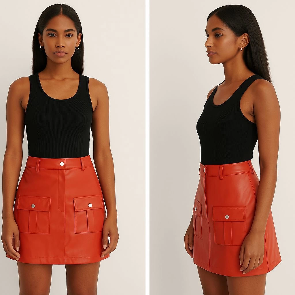 Önden İki Cepli Deri Etek Turuncu H240040 (Beden: S)
