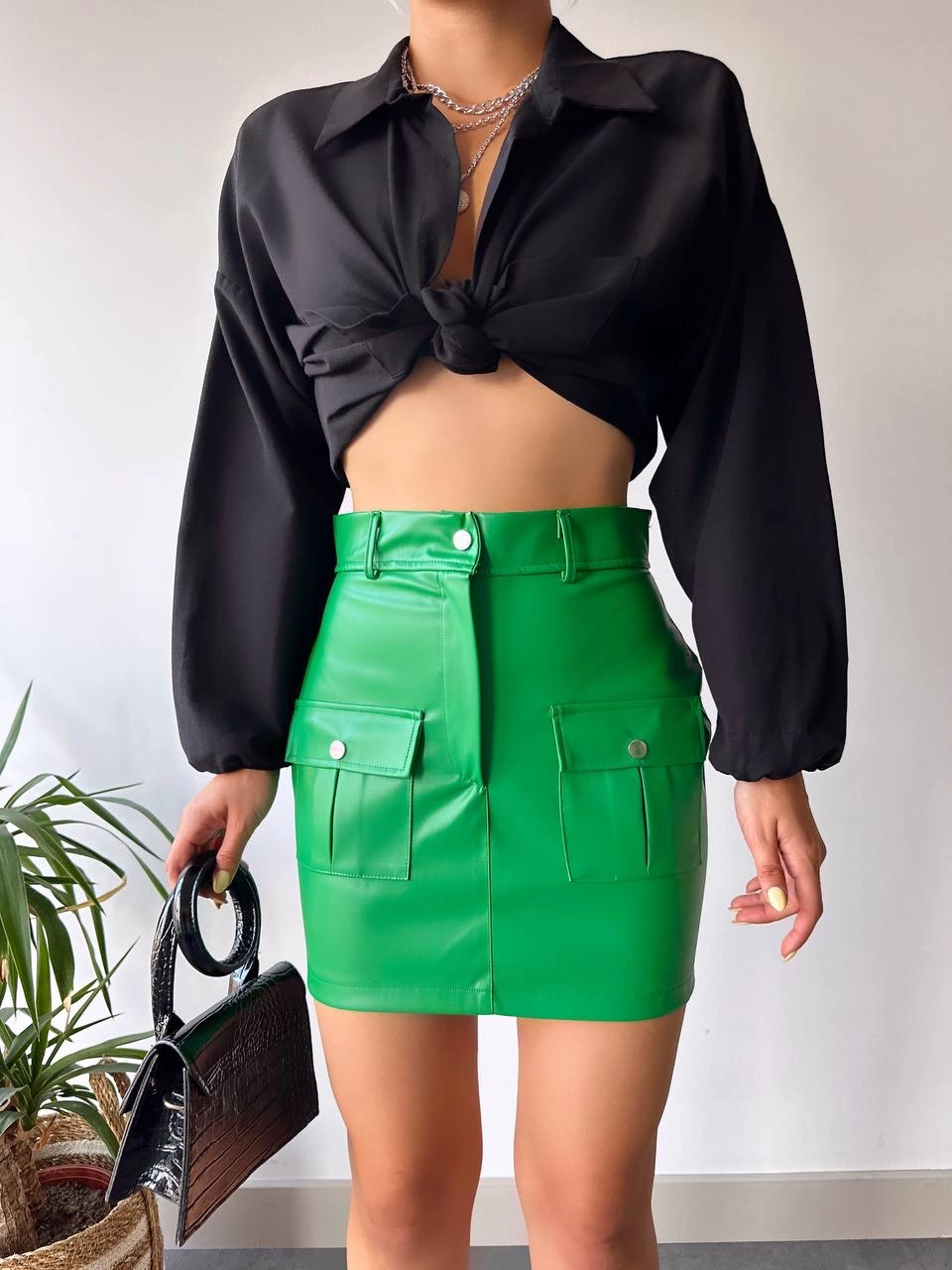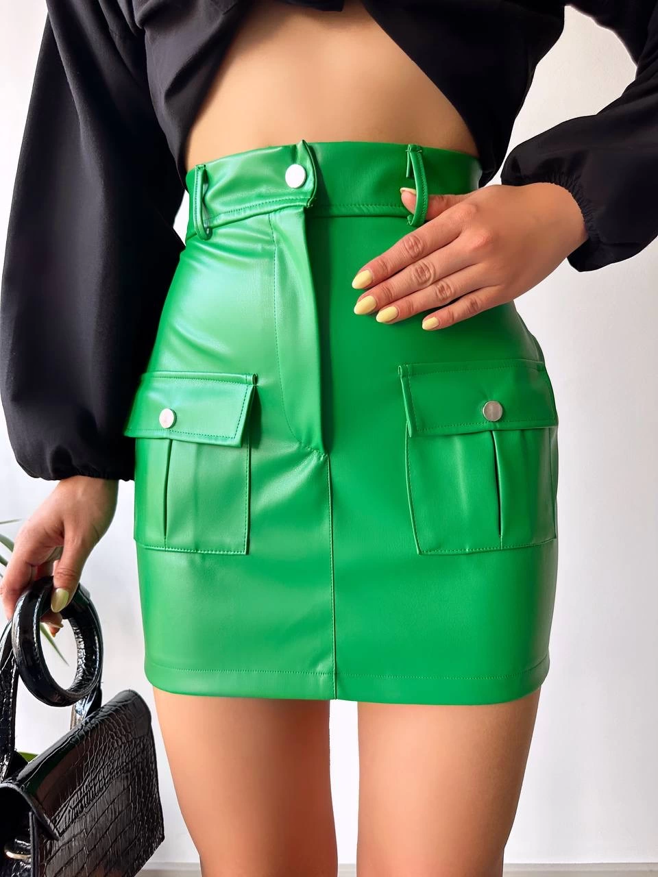 Önden İki Cepli Deri Etek Yeşil H240040 (Beden: S)