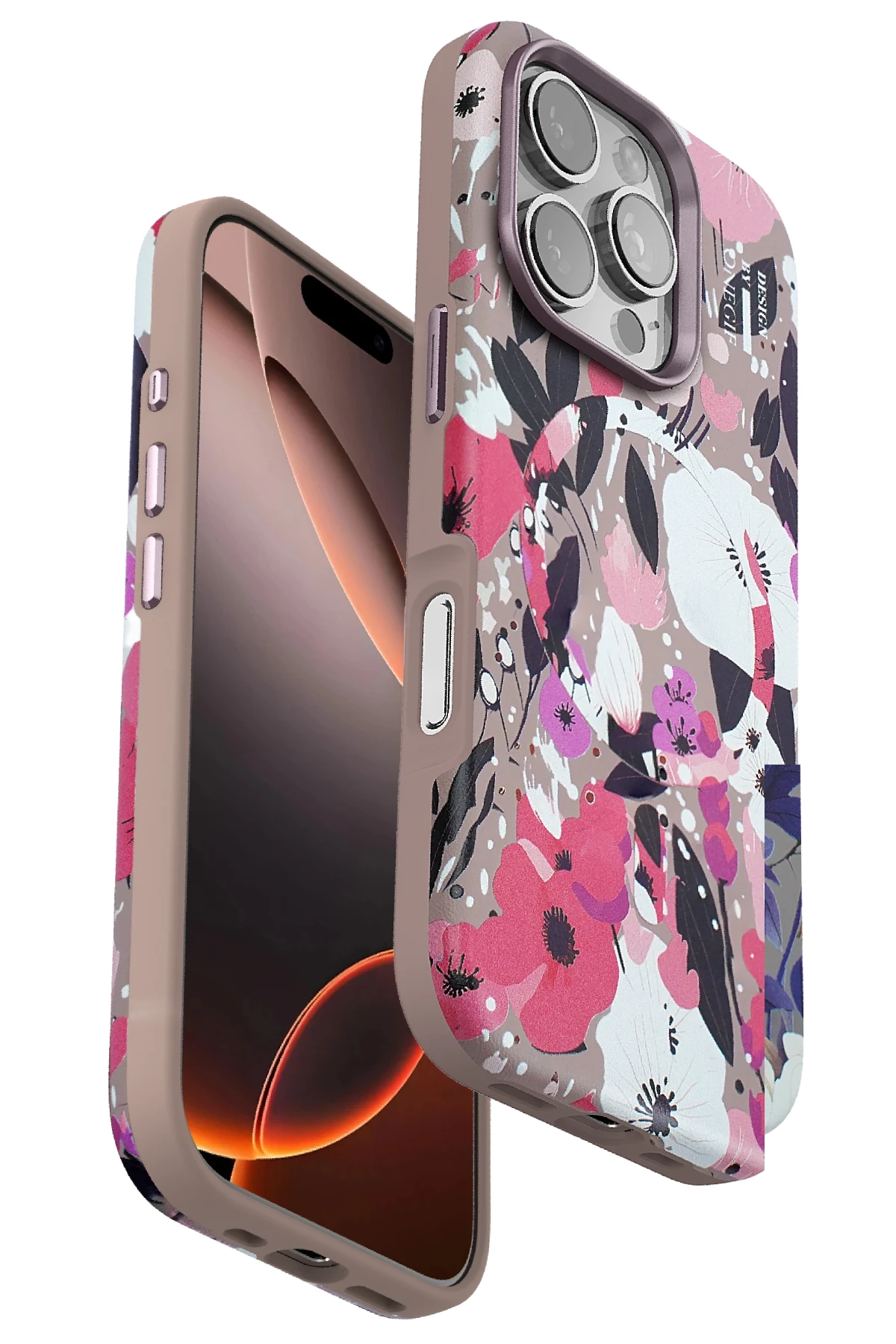 Onegif iPhone 16 Pro Max Flower Series Magsafe Kapak – Pembe