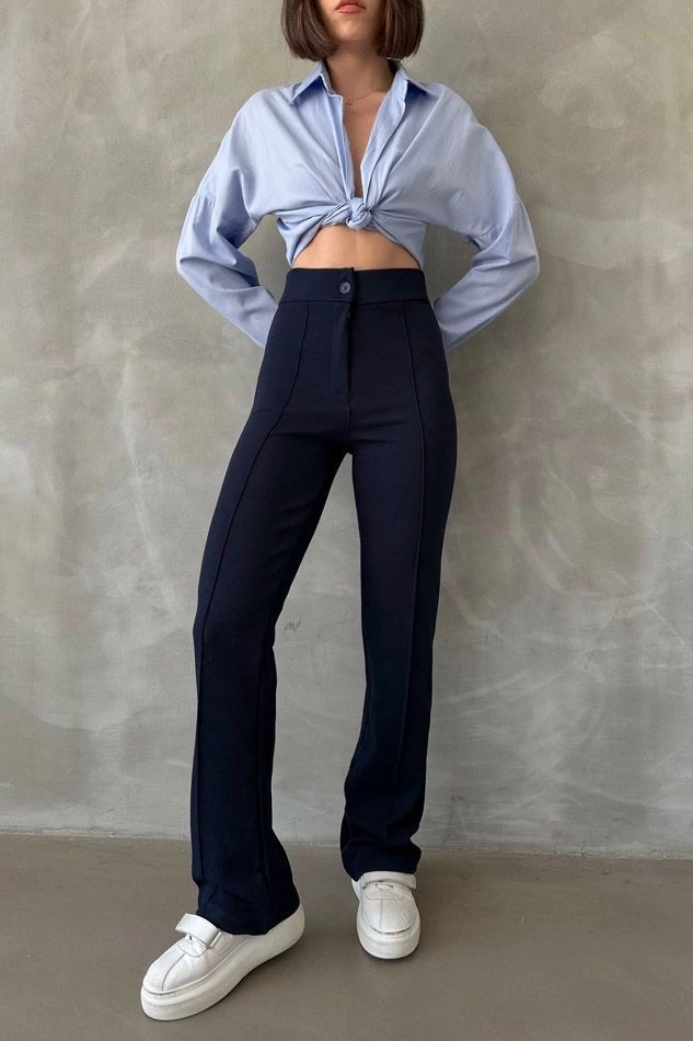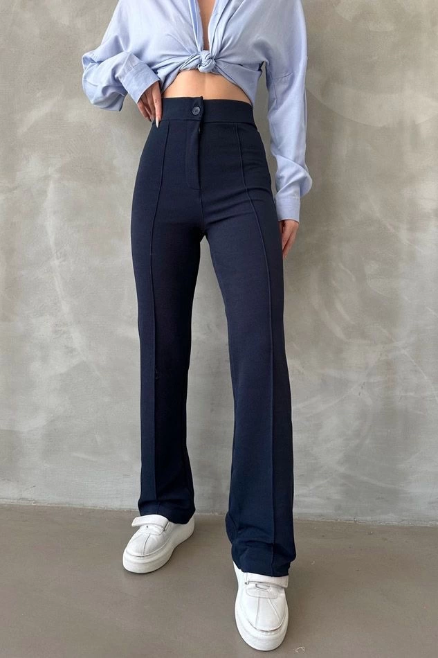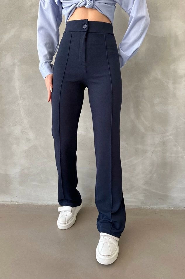Önü Cumalı İthal Krep Pantolon Lacivert (Beden: M)