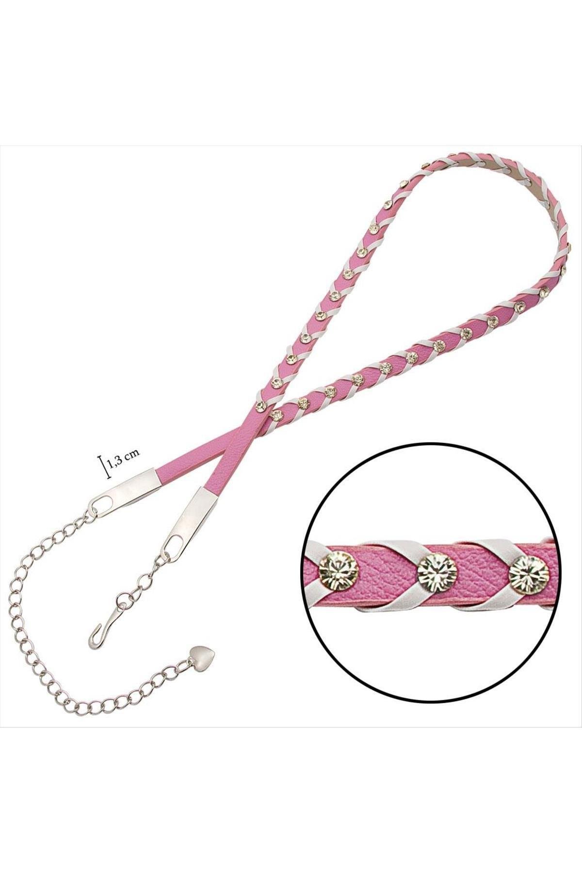 Örgü modelli kristal model taşlı ve ayarlanabilir zincirli deri kemer