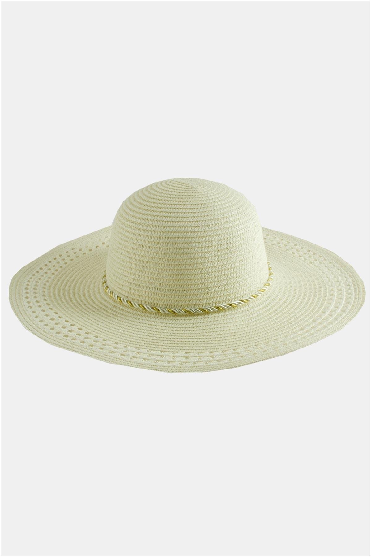 Örgülü Hasır Şapka-Krem