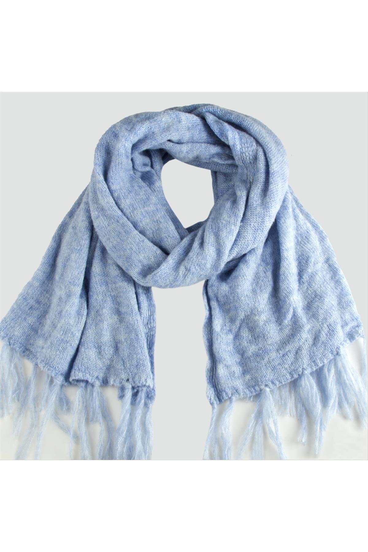 Örgülü İplik Kışlık Şal-Açık Mavi