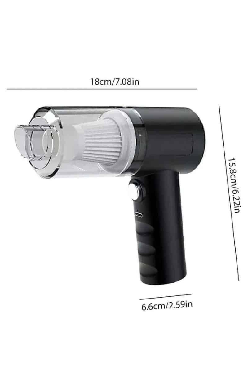 Mini vakumlu araç süpürgesi, kompakt ve şık tasarımıyla araç içi temizlik ihtiyaçlarını pratik şekilde karşılayan çok fonksiyonlu bir üründür. 120W güçlü motoru sayesinde 5500Pa vakum gücü üretir ve bu sayede araç içerisindeki toz, kırıntı, saç teli ve diğer küçük partikülleri zahmetsizce temizler. Katlanabilir sapı, hem kullanım kolaylığı sağlar hem de ürünün taşınmasını ve saklanmasını son derece pratik hale getirir.