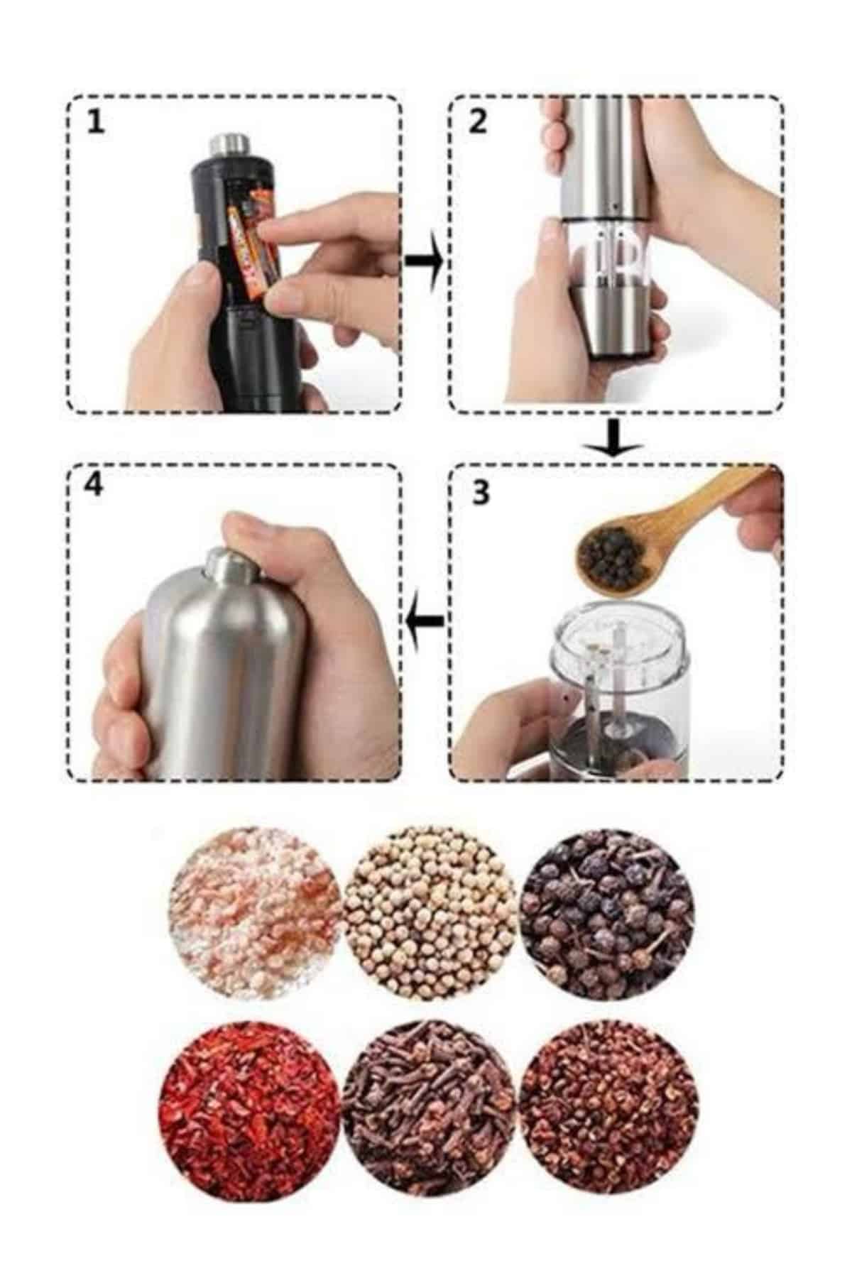 Sadece 4 adet AA pil ile çalışan bu otomatik öğütücü seti, kablosuz ve taşınabilir yapısı ile her yerde rahatça kullanılabilir. Elektrik bağlantısına ihtiyaç duymadan dilediğiniz yerde taze baharatların keyfini çıkarabilirsiniz. Yüksekliği 22.5 cm, çapı 5 cm, hazne yüksekliği 3.5 cm ve ağırlığı 304 gram olan ergonomik tasarımı sayesinde hem mutfakta hem de sofrada rahatça kullanabilirsiniz. Şık metal gri rengi, her mutfak dekorasyonuna uyum sağlayarak tarzınızı tamamlar.