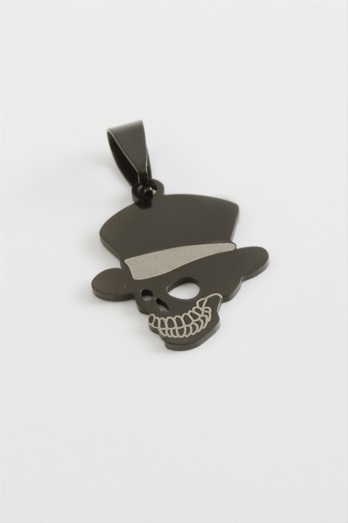 Ottoman Şapkalı Kuru Kafa Çelik Kolye Ucu 2,5 cm-Siyah