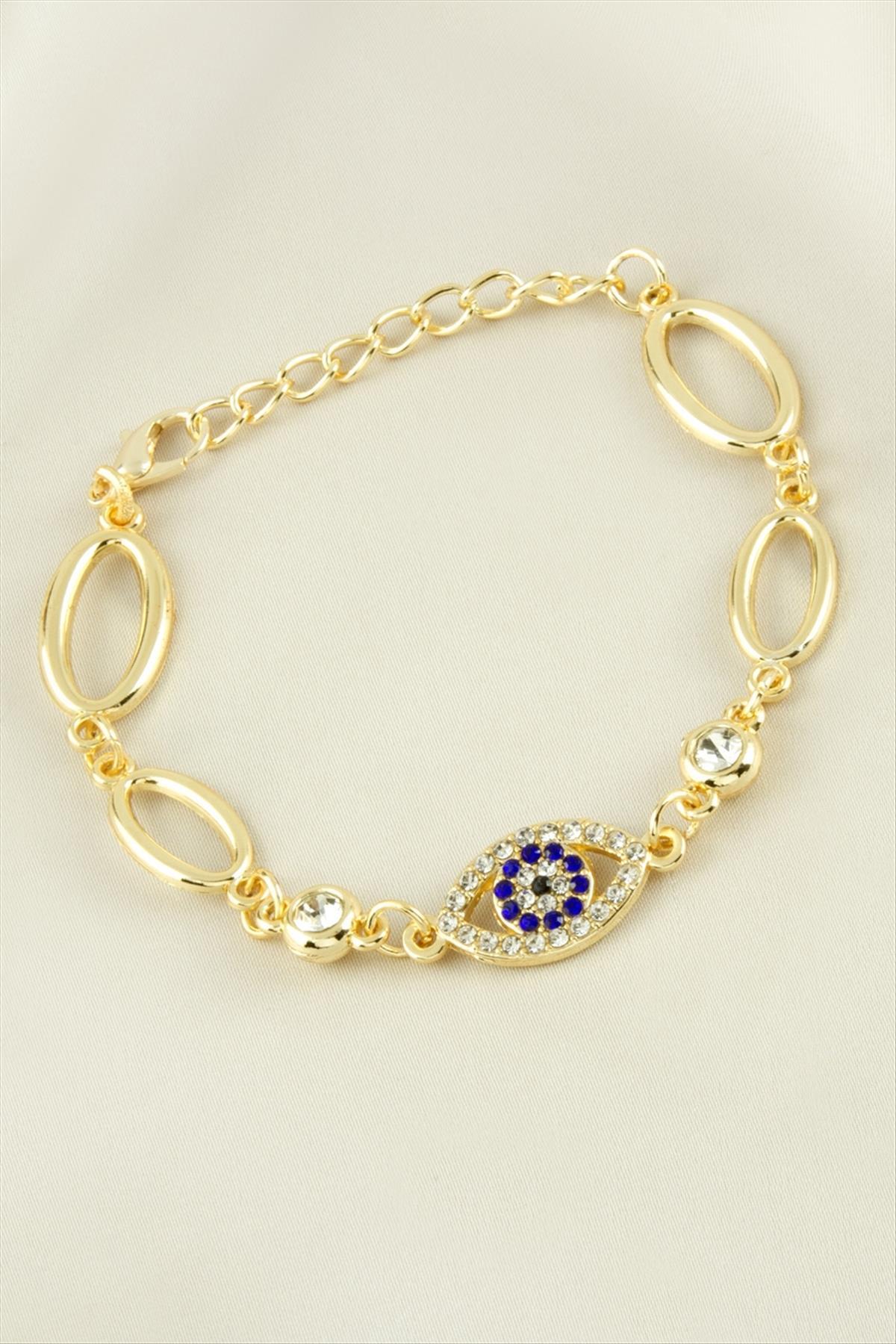 Oval Gözlü Taşlı Trend Bileklik-Sarı