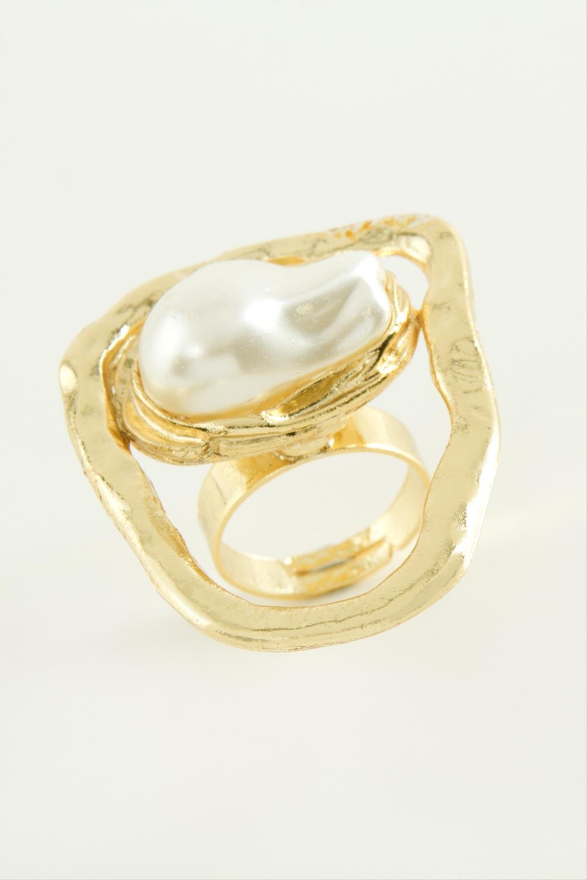Oval İnci Metal Yüzük-Sarı