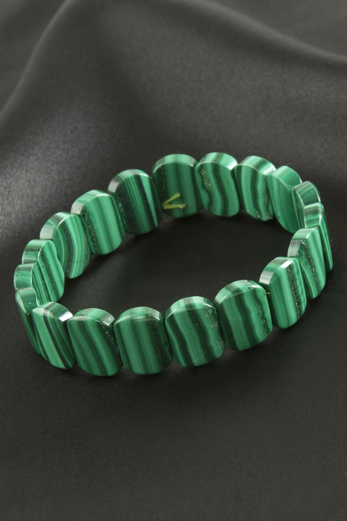 Oval Kesim Orjinal Malahit Doğaltaşlı Bileklik