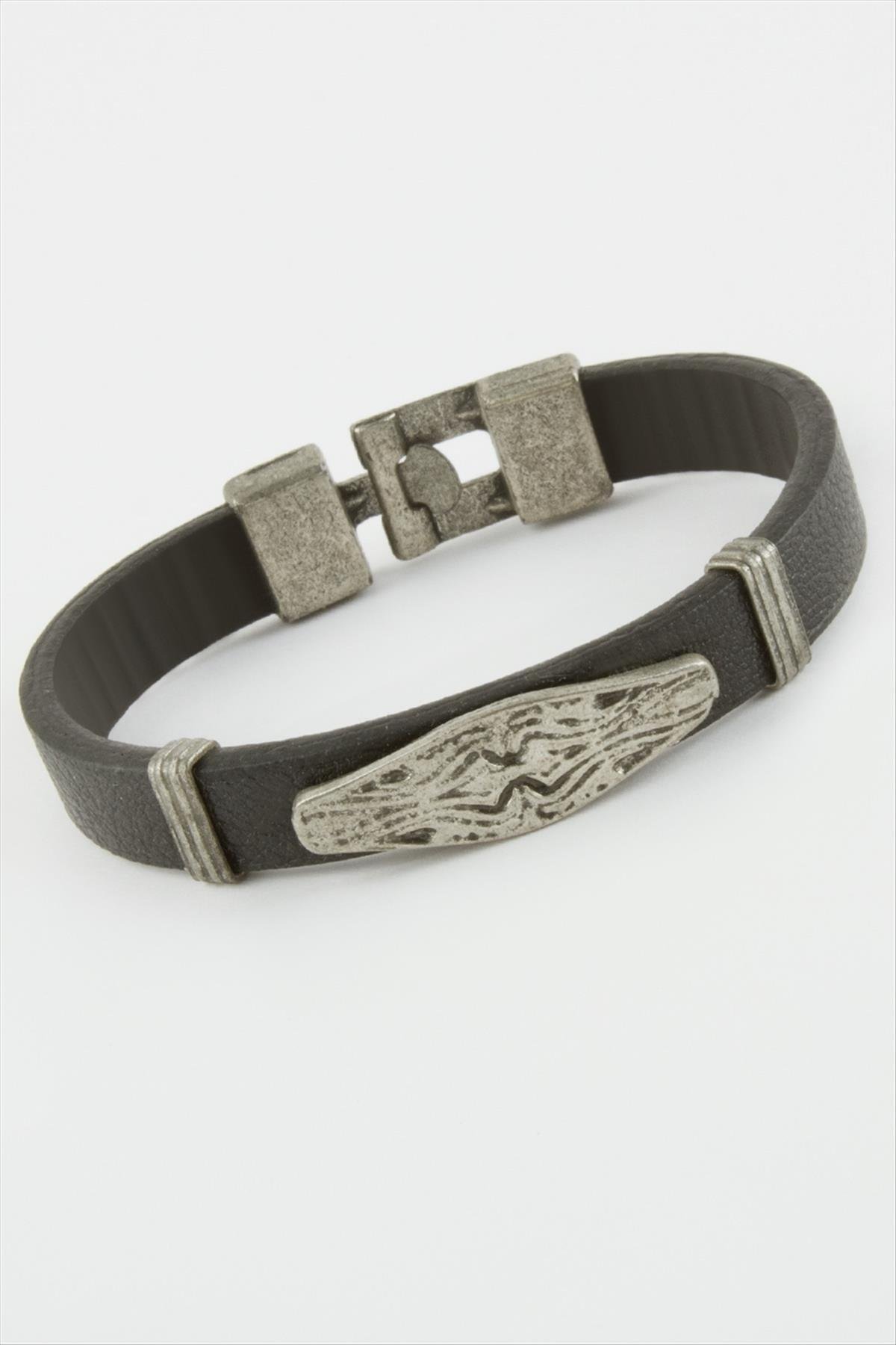 Oval Suni Deri Bileklik-Siyah