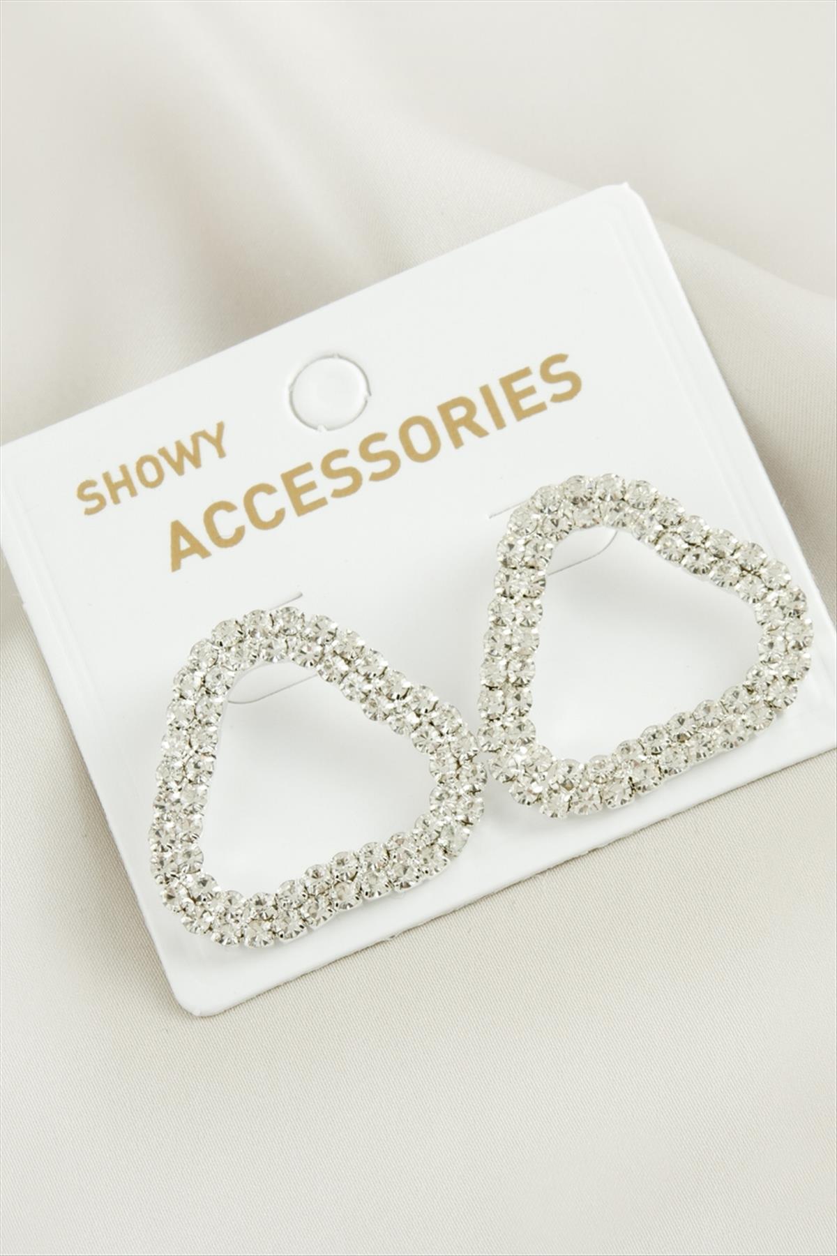Oval Suyolu Taşlı Küpe-Gümüş Rengi