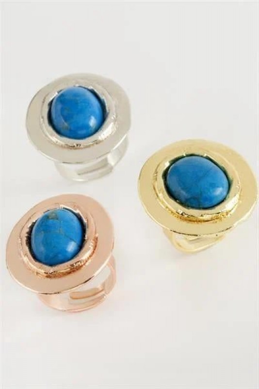 Oval Turkuaz Taşlı Yüzük-Sarı