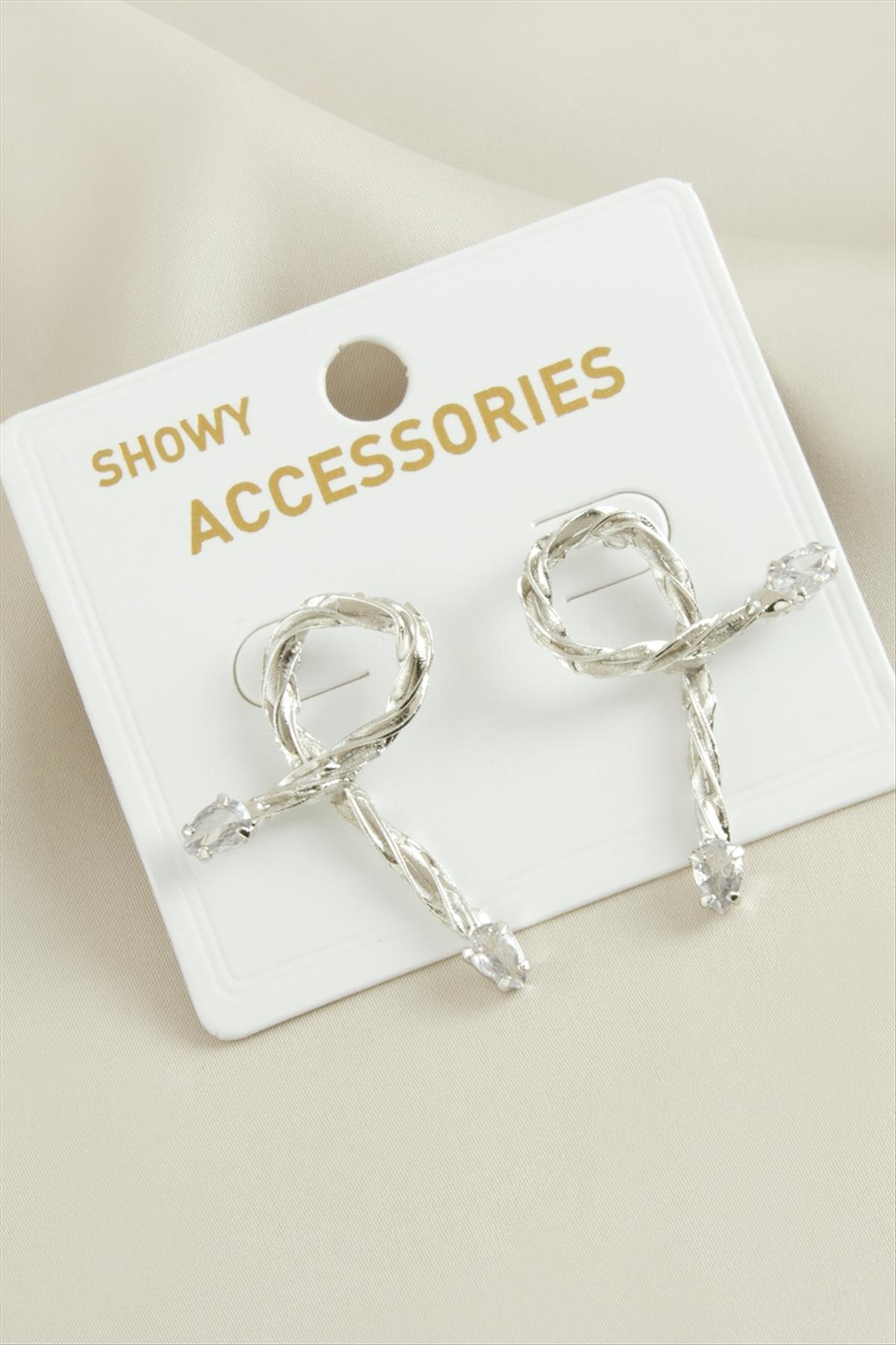 Oval Yeni Sezon Damla Taşlı Küpe-Gümüş Rengi