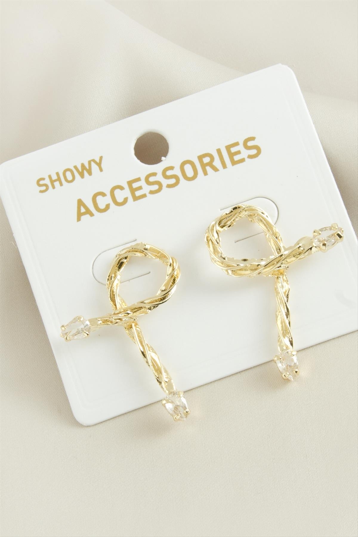 Oval Yeni Sezon Damla Taşlı Küpe-Sarı