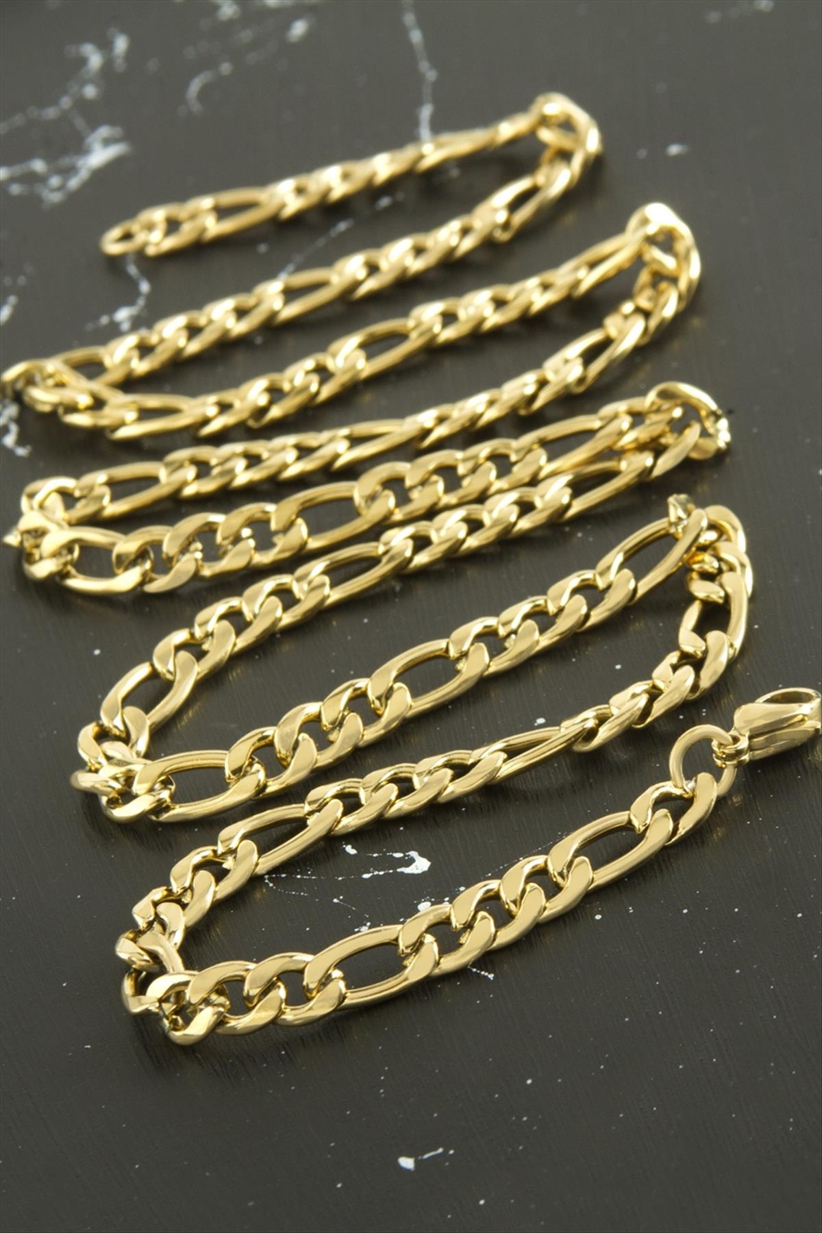 Oval Zincir Çelik Kolye 55 cm-Sarı