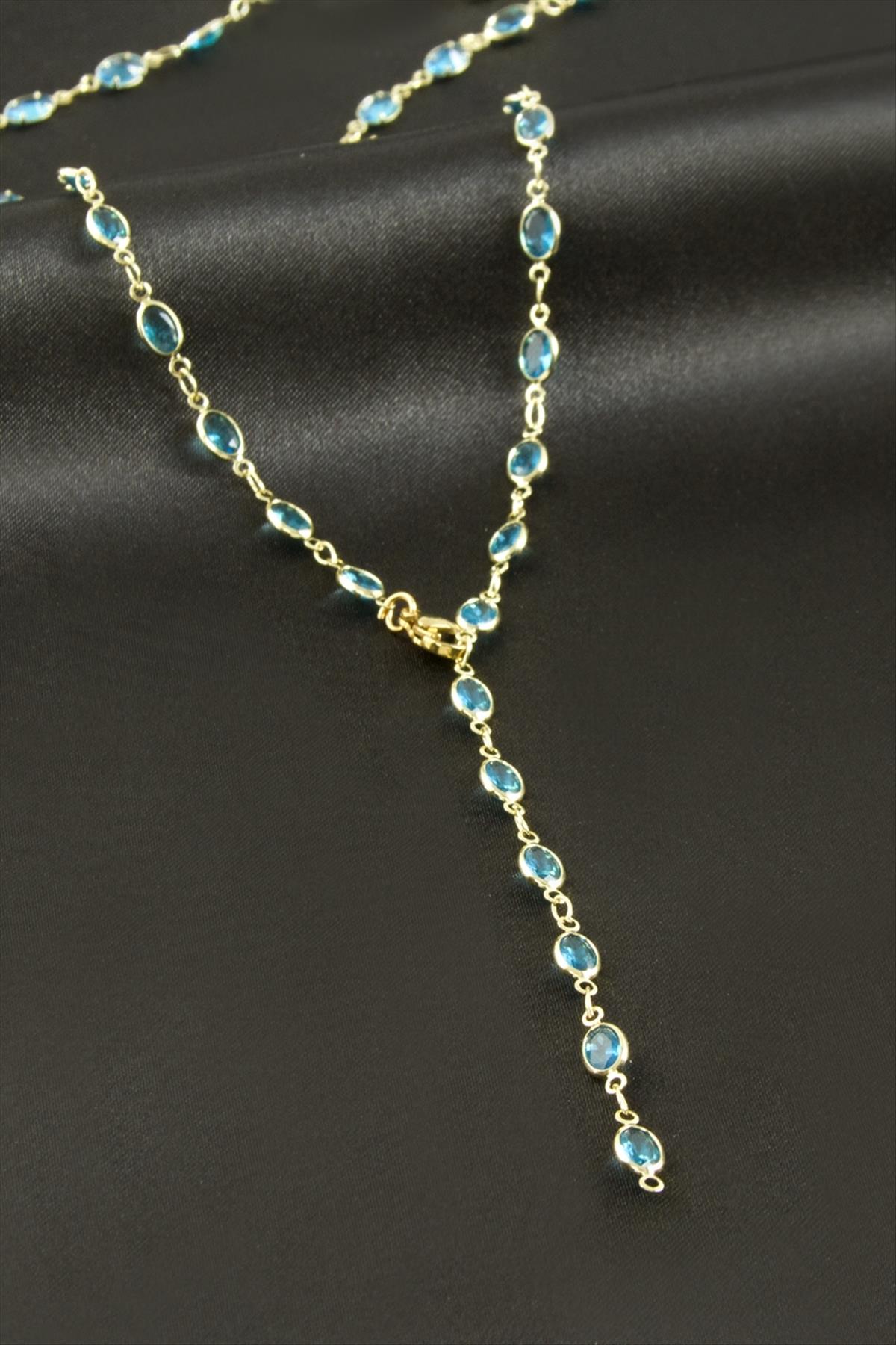 Oval Zirkon Taşlı Çelik Y Kolye-Kırmızı