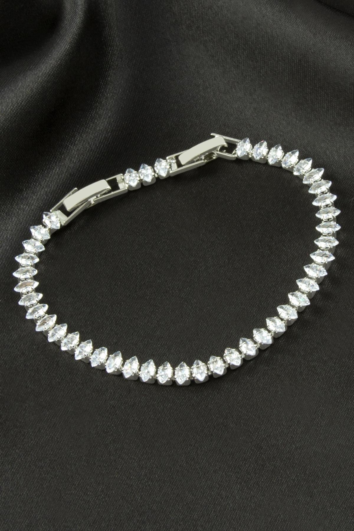 Oval Zirkon Taşlı Lüks Kararmaz Bileklik 5 mm-Gümüş Rengi