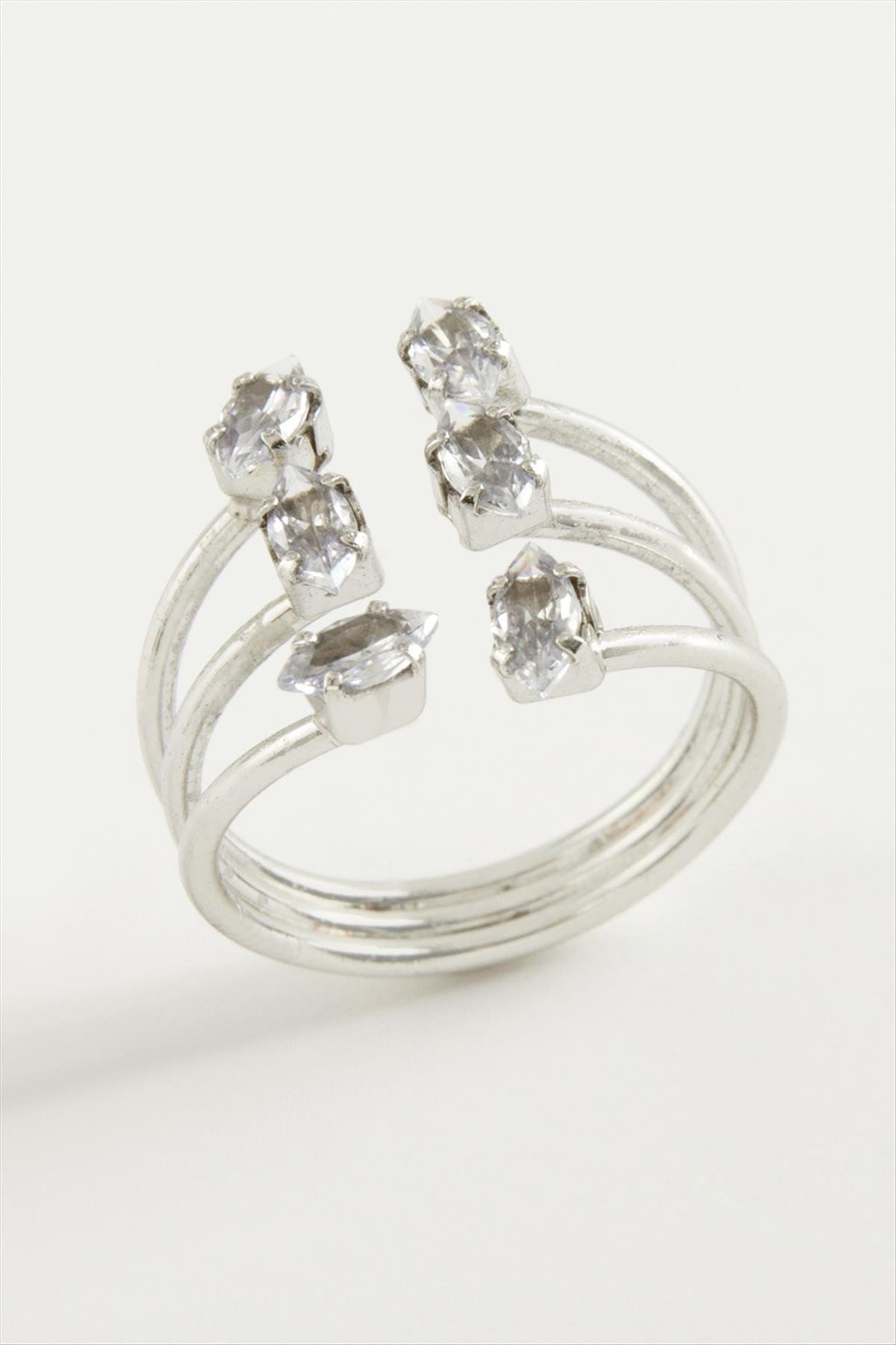 Oval Zirkon Taşlı Yüzük-Gümüş Rengi