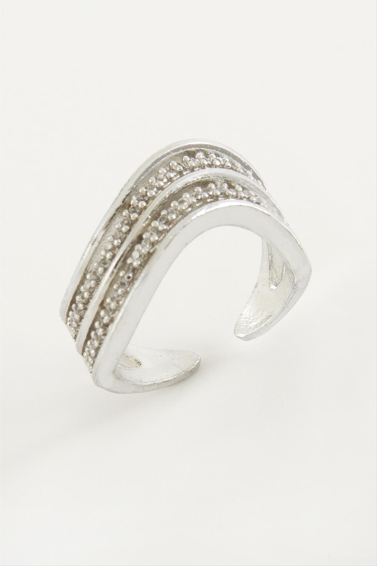Oval Zirkon Taşlı Yüzük-Gümüş Rengi