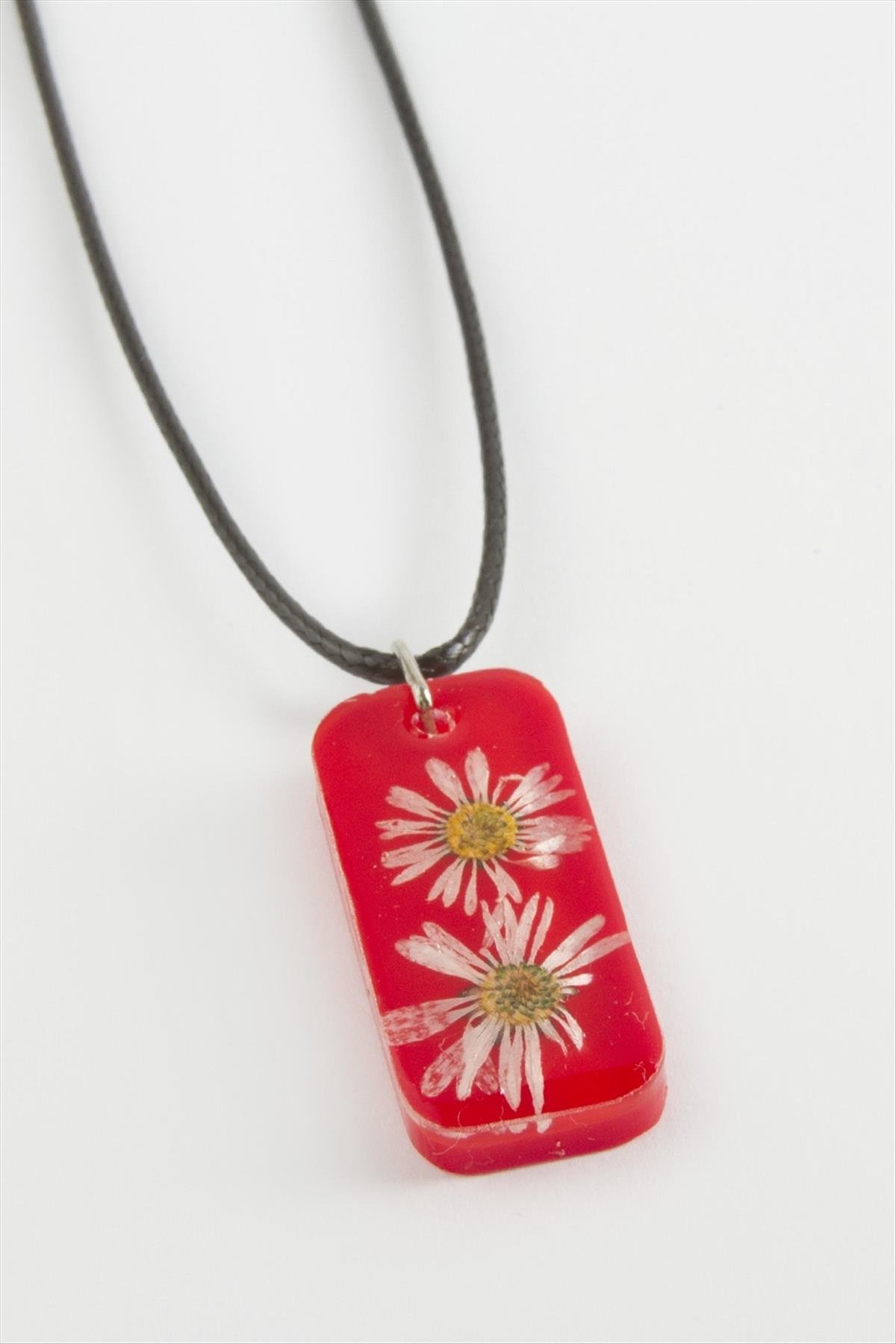 Papatya Dikdörtgen Epoksi Kolye-Kırmızı
