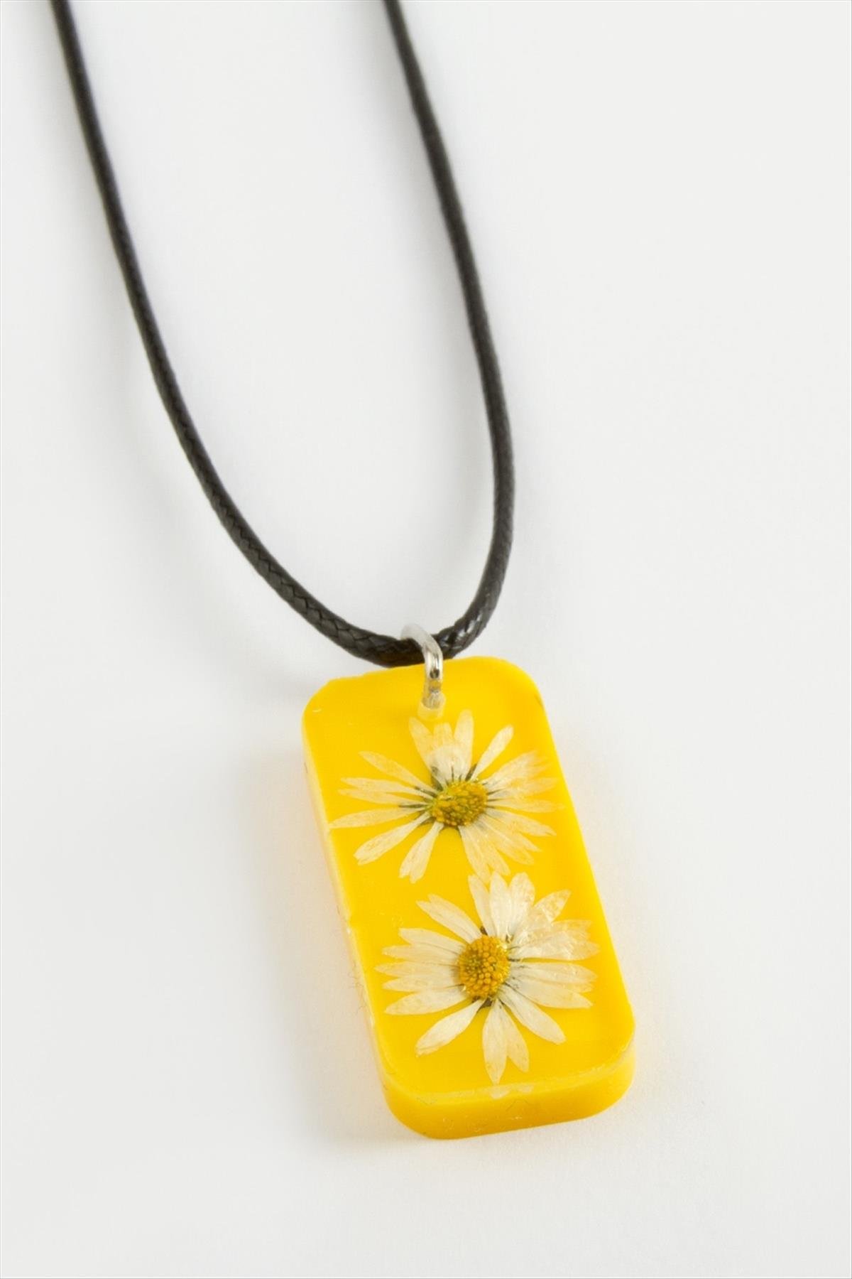 Papatya Dikdörtgen Epoksi Kolye-Sarı