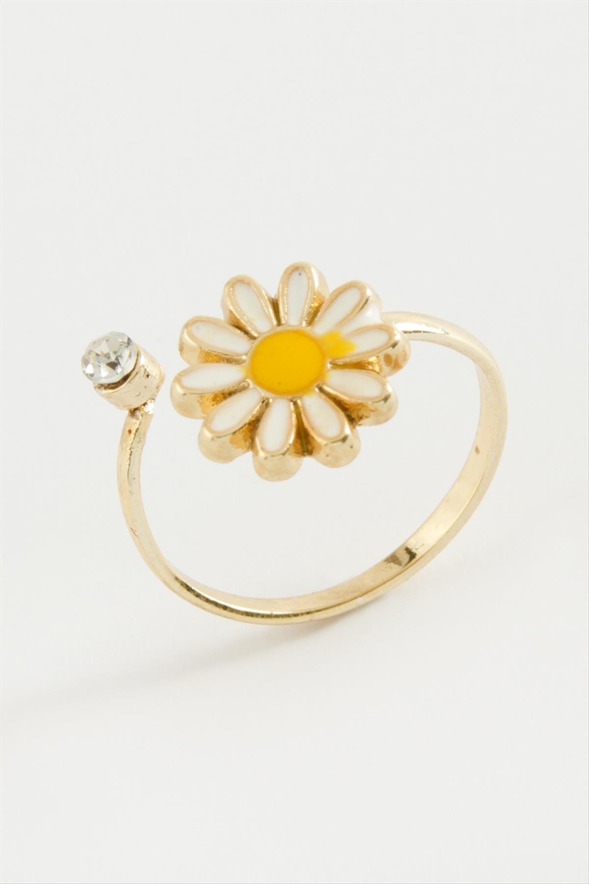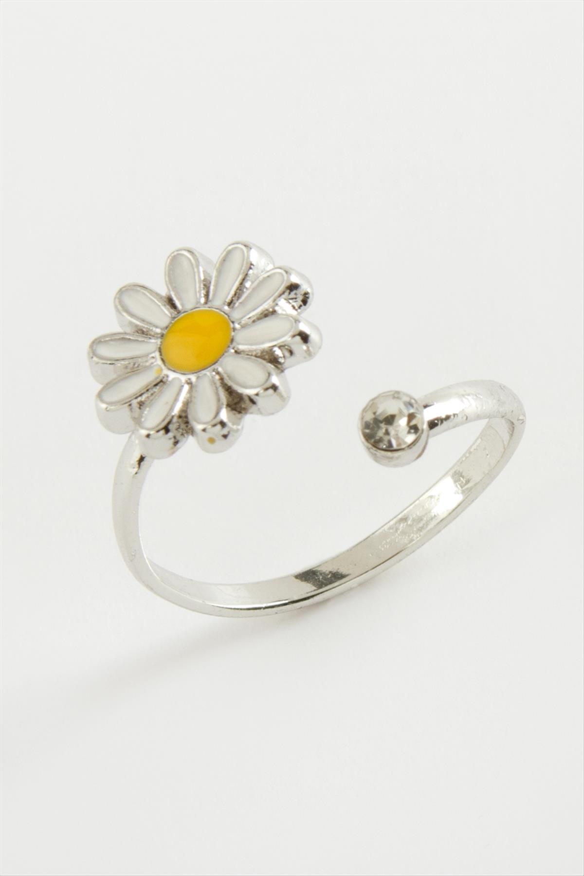 Papatya Mineli Taşlı Yüzük-Gümüş Rengi