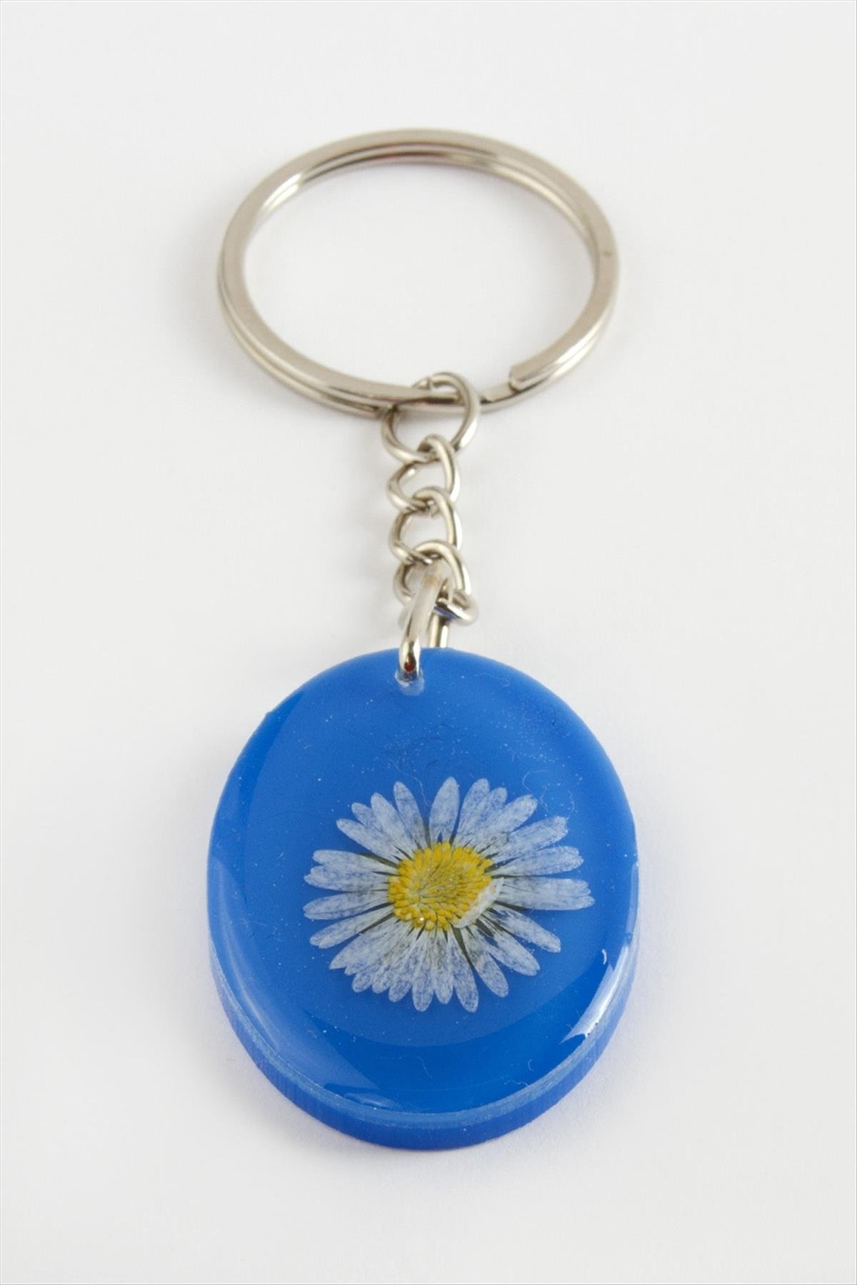 Papatya Oval Epoksi Anahtarlık-Mavi