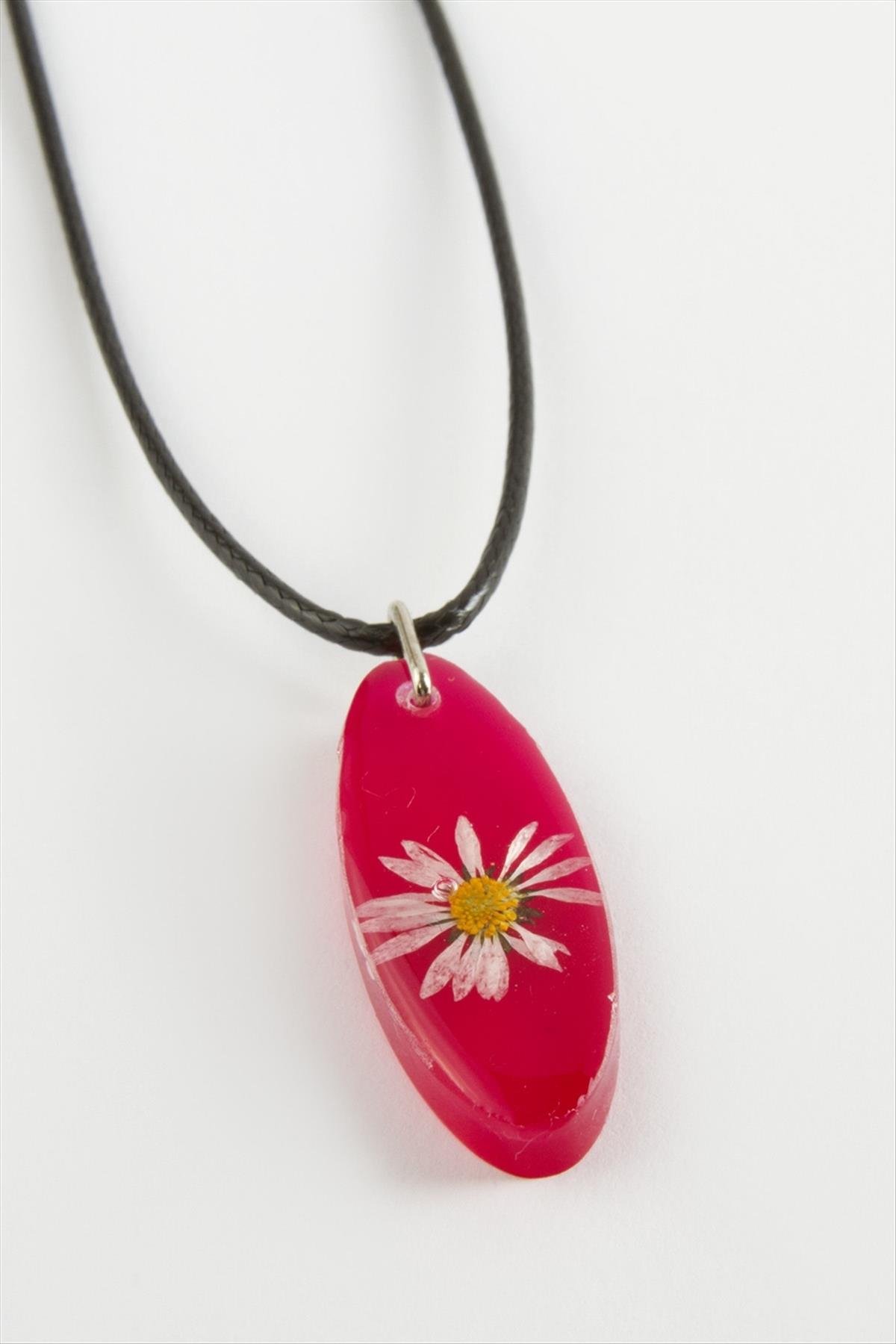 Papatya Oval Epoksi Kolye-Pembe